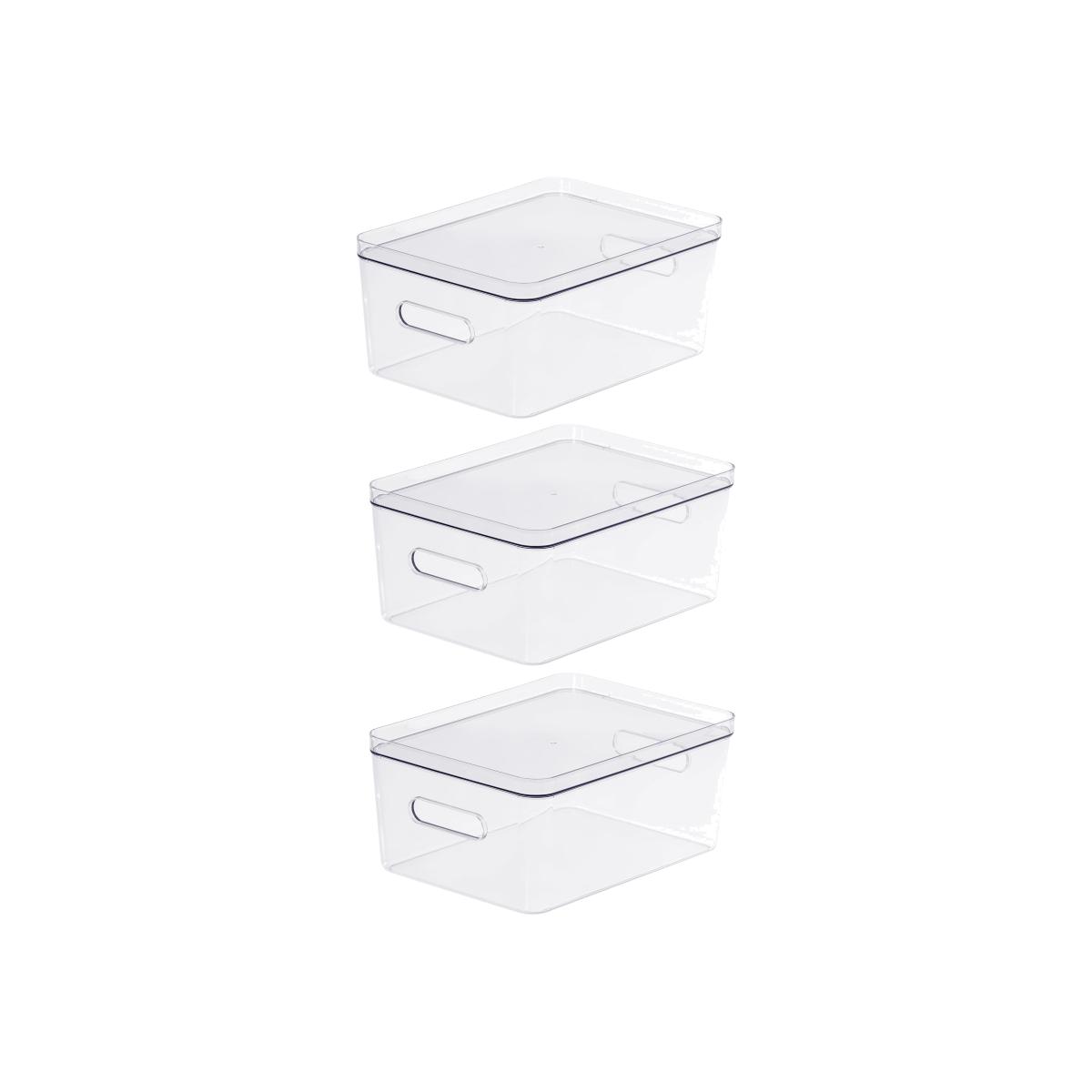 Compact Storage Tub Large with lids 15.4L Set of 3, Clear