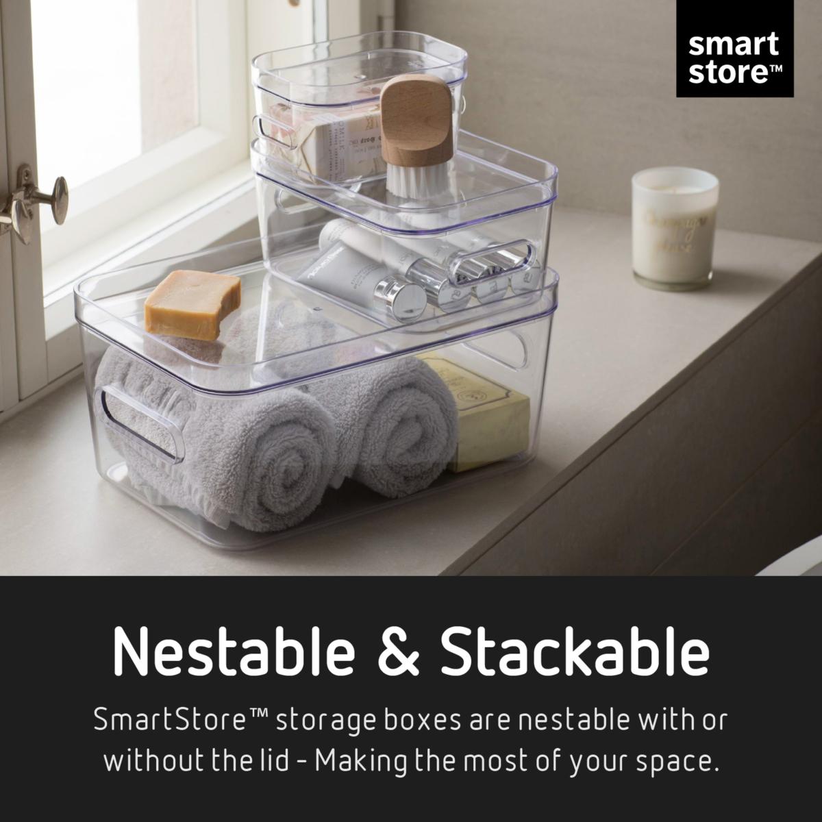 Store your belongings with ease using the Compact Storage Tub Medium with lids 5. 3. L Set of 4 in Clear. Featuring a 10-year guarantee, food approval, BPA-free construction, and 20% renewable content, these 5. 3-liter transparent boxes provide ample storage space while promoting an organized living environment.