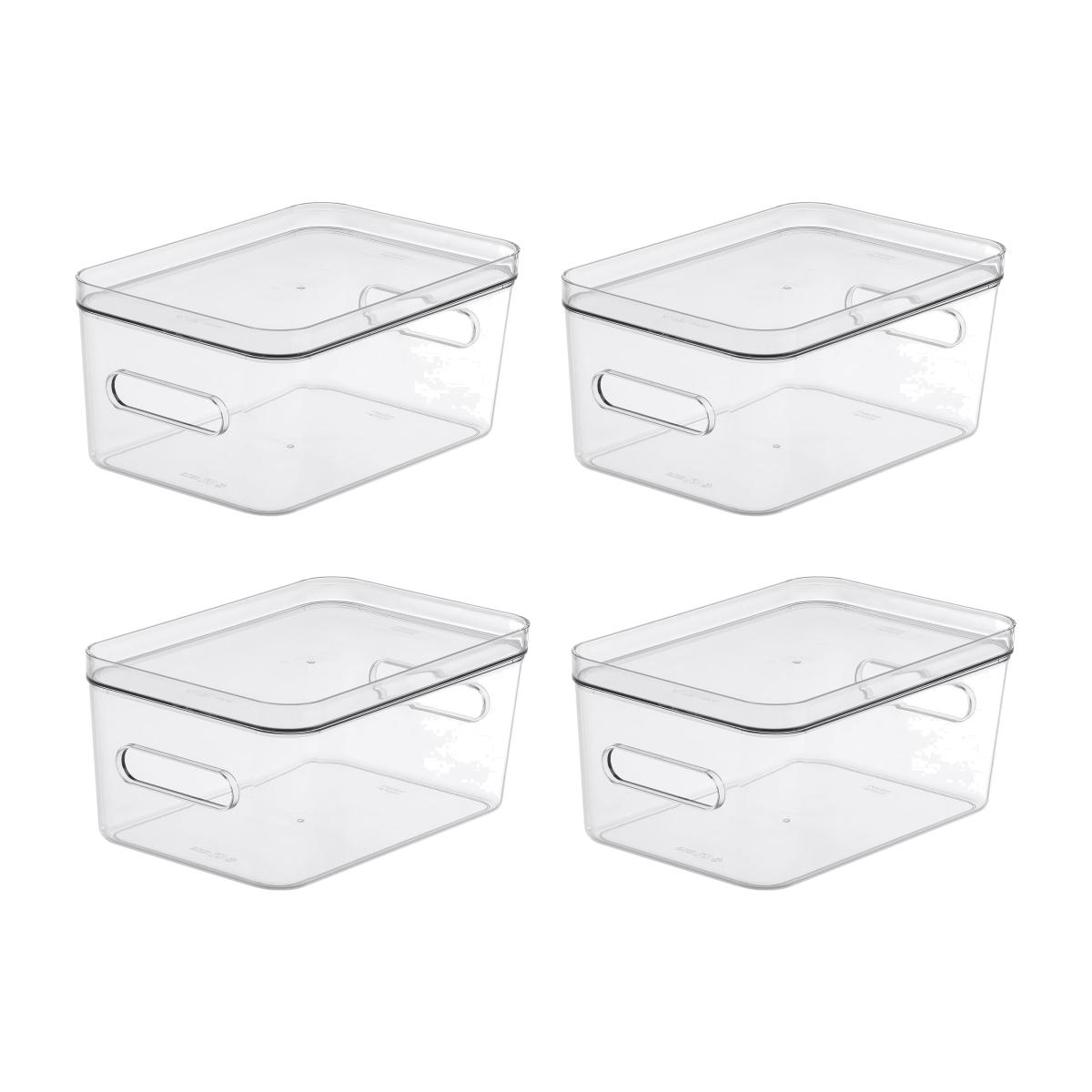 Compact Storage Tub Medium with lids 5.3L Set of 4, Clear