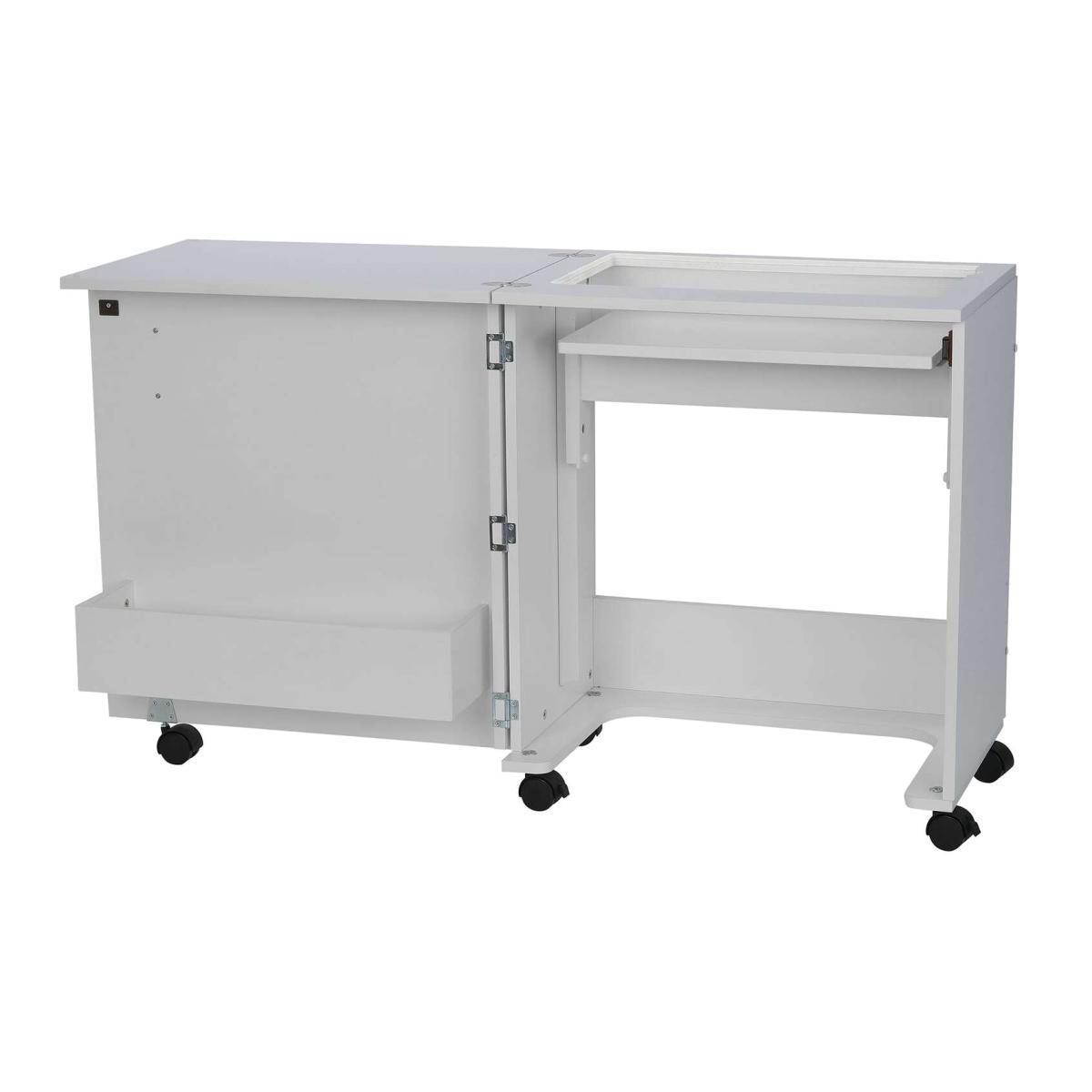Compact White Sewing Machine Cabinet with Lift Mechanism - White