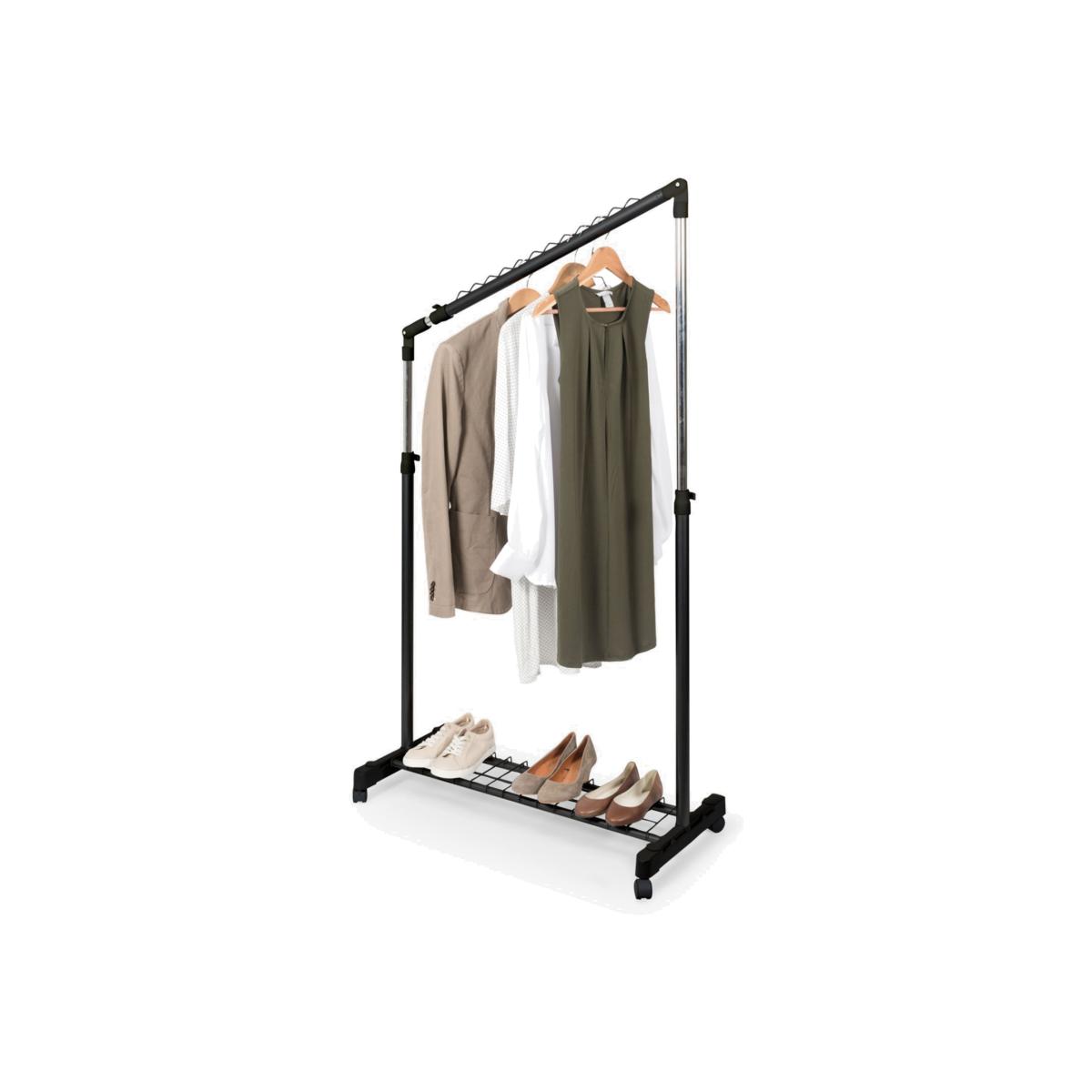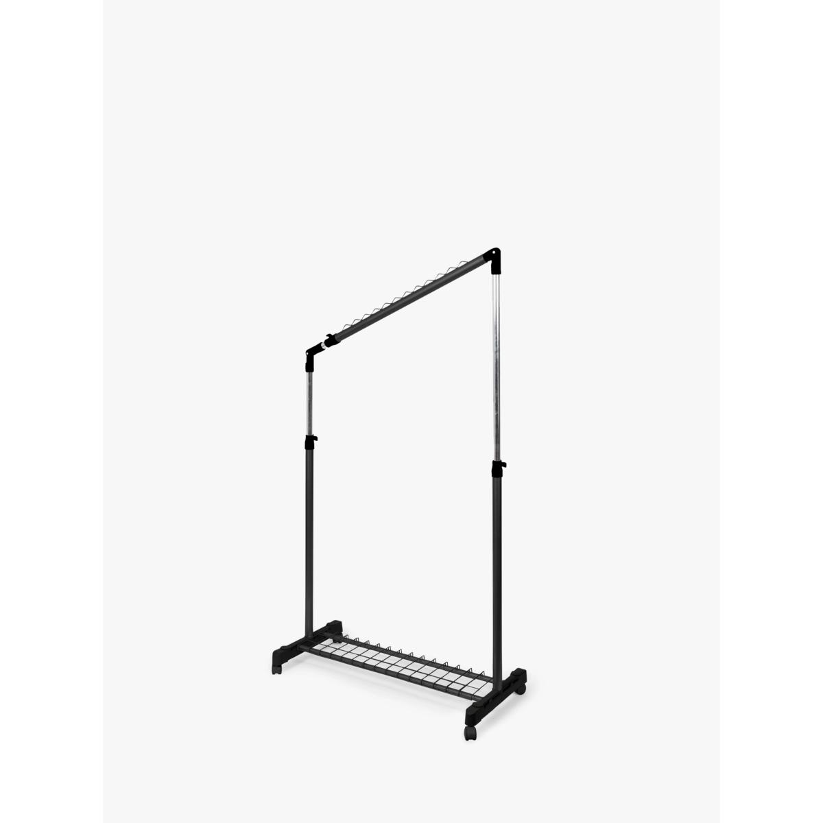 This cleverly-designed clothing rail fits neatly in the space under your stairs or in a cupboard. The height and the tilt are fully adjustable so you can make the rack exactly the right size required. Quick and easy to put together, it can be fully dismantled for storage when not in use. Made from stainless steel and plastic.