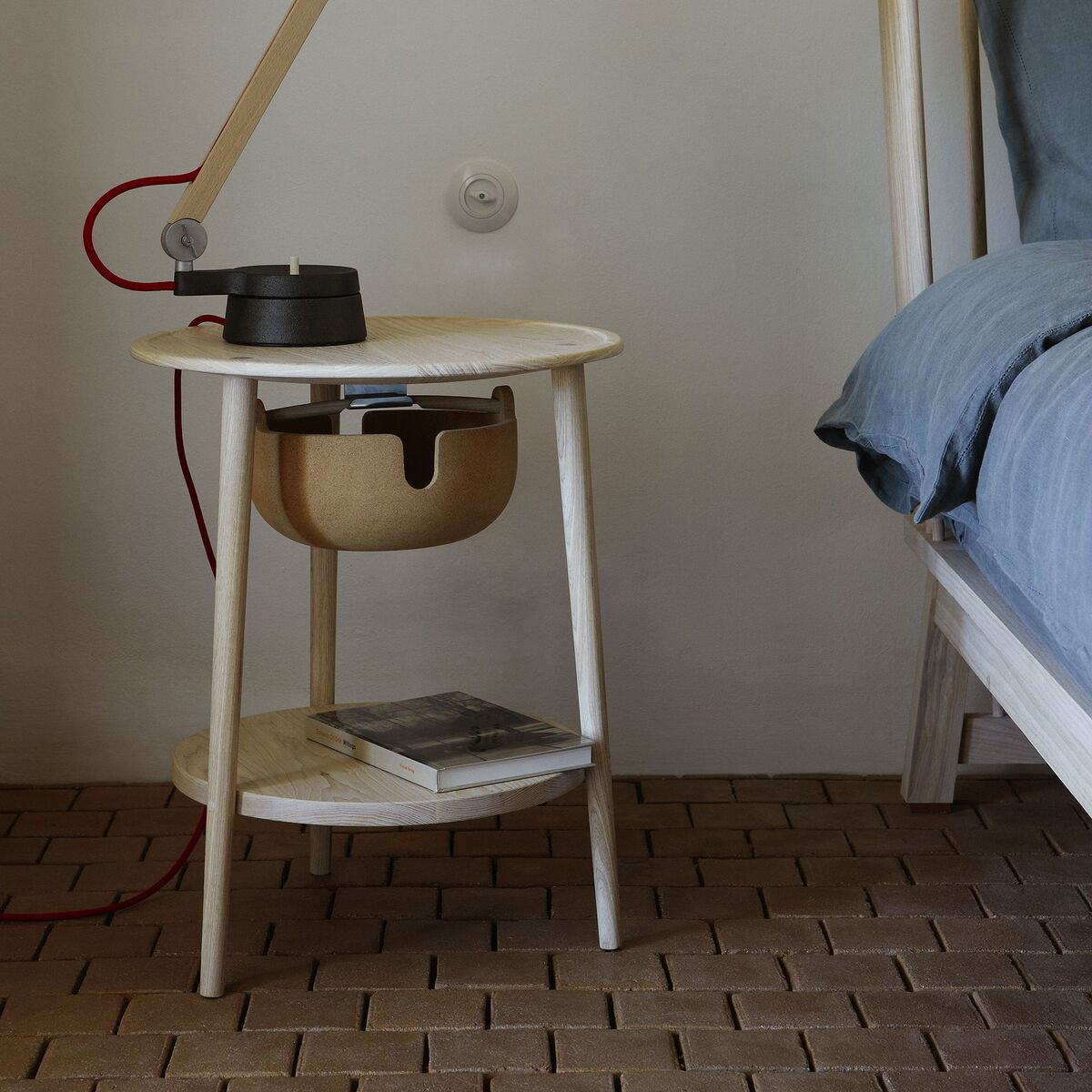 Designed by Ilse Crawford for her innovative design house, Studioilse, and crafted by De La Espada, this tall white-oiled oak Companions Bedside Table is a contemporary form with simple charm. Expertly crafted from ethically sourced American white oak, the refined bedside table is accented with a removable cork bowl for extra storage and a metal hook to hang it from. Forming part of the Companions Family collection, Studioilse designed the table to support daily life with function and style. Manufactured by De La Espada, this white oiled oak Companions Bedside Table by Ilse Crawford would make a wonderful addition to your interior and would enhance your bedroom with its calming form. Shop the coordinating Companions Bed here