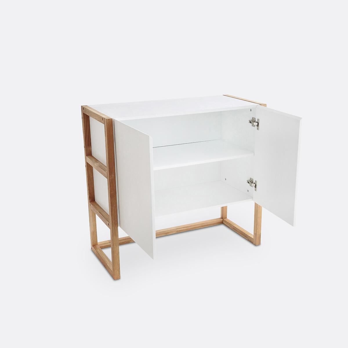 The Compo 2-door sideboard. Scandinavian style, a combination of oiled solid oak and white MDF for the Compo 2-door sideboard to combine with other Compo furniture. Product Details • 1 fixed shelf, 2 niches • Solid oak uprights, oiled finish • Cabinets and shelves in white lacquered MDF, nitrocellulose varnish • Felt padsDimensions. Total: • Width: 90.8cm • Height: 84.2cm • Depth: 42cm. Usable dimensions: • of compartment :L81.4 x H25.4 x D38 cm • Base: H 28.5 cmDelivery:. Assembly required. Available for home delivery. Note! Please check that all access points are large enough to accommodate your delivery (doors, stairs, lifts).Dimensions and weight of parcel1 parcel • L 95 x H 27.5 x D 51.5 cm • 38.6kg