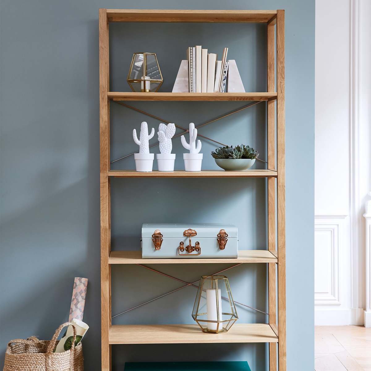 I love this sort of slender, minimalist shelving unit for its versatility and clean lines. It works particularly well in modern, Scandi, or even boho interiors where you want to add storage without overwhelming the space. Its open design makes it perfect for displaying favourite books, plants, or decorative accessories, adding personality without clutter. Practical styling tips include layering objects of varying heights for visual interest, mixing structured and knobbly pieces, and using baskets or boxes on the lower shelves for hidden storage. Given its light wood finish, it complements a range of colour schemes and textures, making it a practical yet stylish addition to any room.