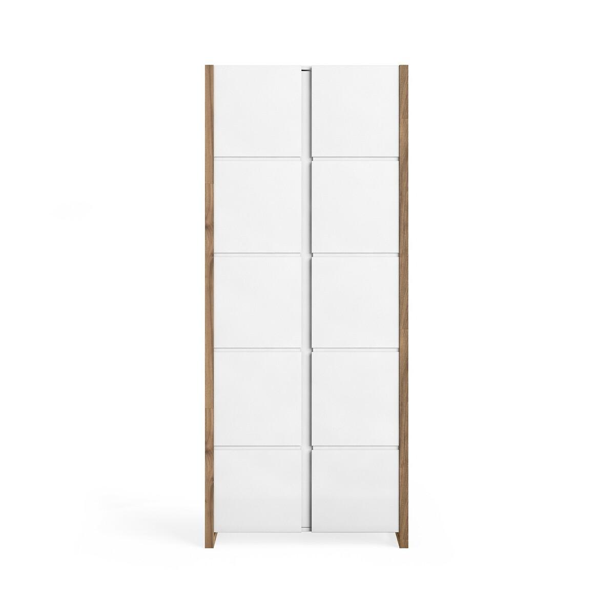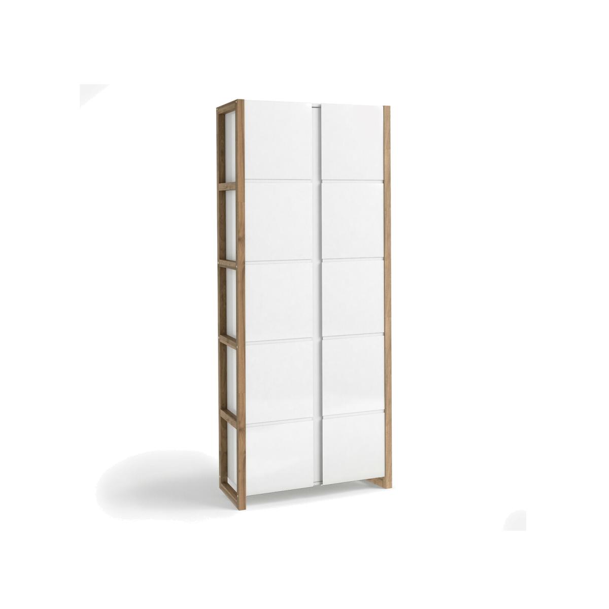 The Compo storage cabinet. You'll love the pared-down style of this storage cabinet. Lots of storage space, an elegant graphic look and a stylish finish. Product Details • 5 large compartments • 4 fixed shelves • 2 doors • Solid oak uprights with an oiled finish • MDF compartments, shelves and doors with a nitrocellulose lacquer finishDimensions. Total: • Width: 80cm • Height: 190cm • Depth: 33.6cm. Usable space : • Compartment: 71.5 x 34cm to 38 x 31.5cmDelivery:. This product is sold for self-assembly. It will be delivered to your door. Note! Please check that all access points are large enough to accommodate your delivery (doors, stairs, lifts).Dimensions and weight of parcel:2 parcels • L198 x H12.5 x D75 cm - 47kg • L82 x H18 x D42 cm - 18kg