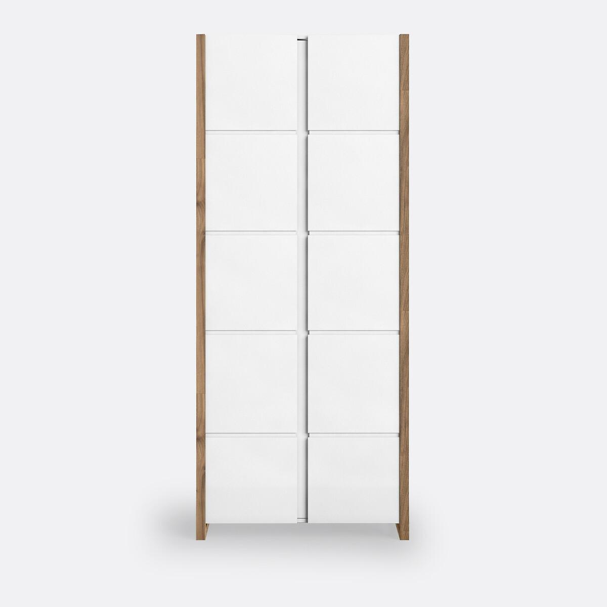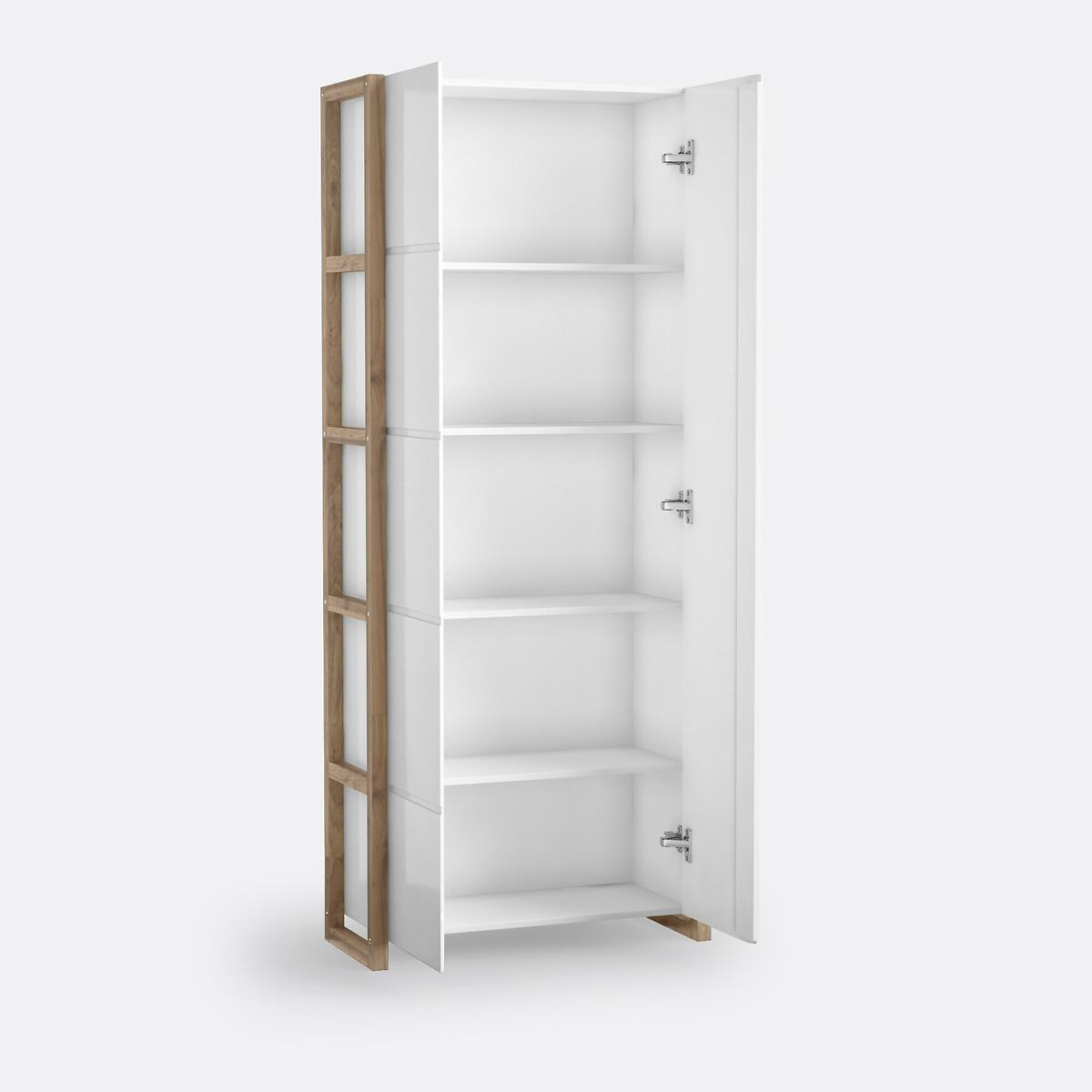 The Compo storage cabinet. You'll love the pared-down style of this storage cabinet. Lots of storage space, an elegant graphic look and a stylish finish. Product Details • 5 large compartments • 4 fixed shelves • 2 doors • Solid oak uprights with an oiled finish • MDF compartments, shelves and doors with a nitrocellulose lacquer finishDimensions. Total: • Width: 80cm • Height: 190cm • Depth: 33.6cm. Usable space: • Compartment: 71.5 x 34cm to 38 x 31.5cmDelivery:. Assembly required. Available for home delivery. Note! Please check that all access points are large enough to accommodate your delivery (doors, stairs, lifts). • WOOD FROM SUSTAINABLY MANAGED FORESTS. FSC® certified wood comes from forests that are environmentally, socially and economically well managed. Dimensions and weight of parcel:2 parcels • L198 x H12.5 x D75 cm - 47kg • L82 x H18 x D42 cm - 18kg