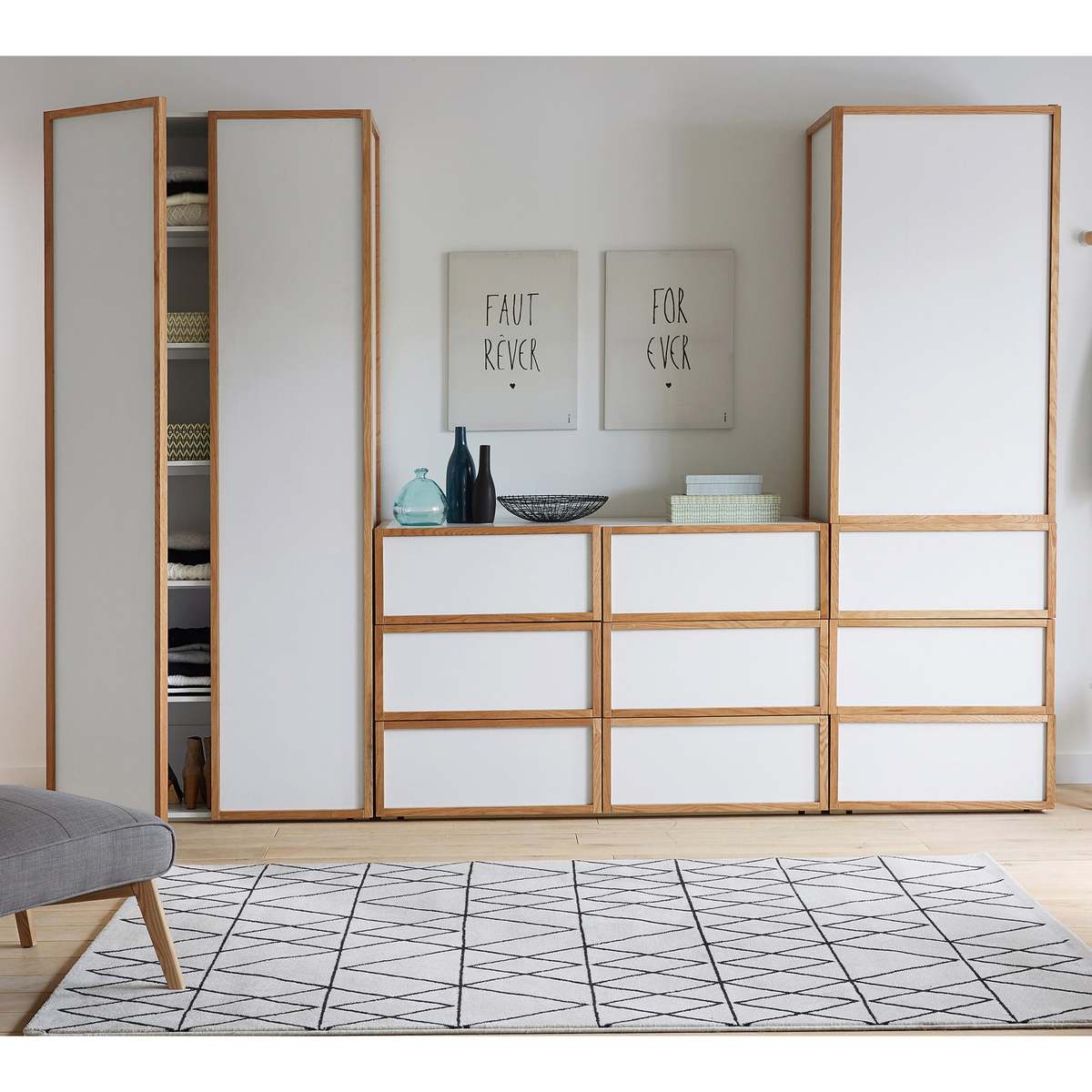 Compo double-door wardrobe with 3 shelves. With its combination of lacquer and light wood, its size and clever storage solutions: this wardrobe will look great in any room!