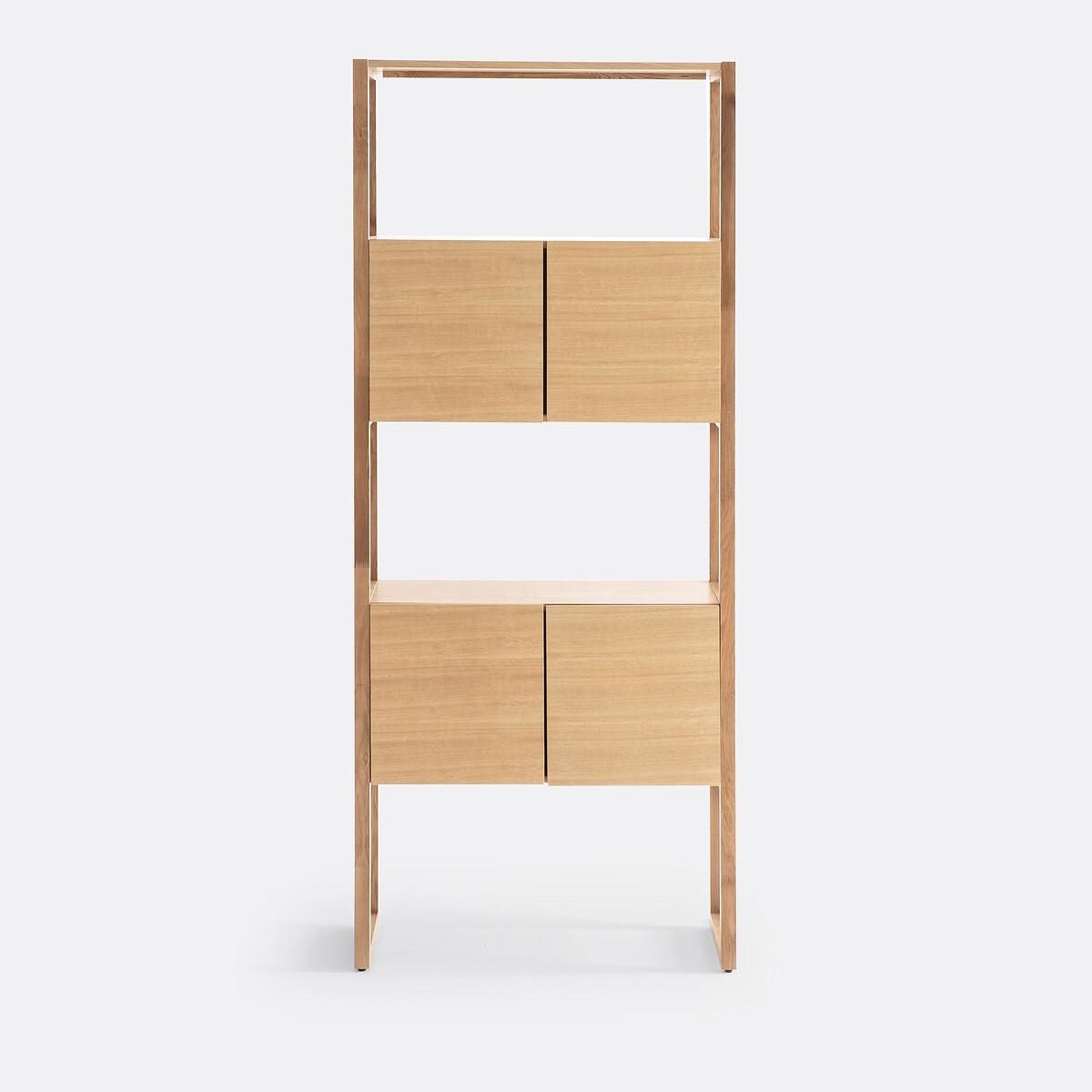 The Compo storage bookcase. This storage bookcase has a Scandinavian style. To combine with other furniture in the Compo range. Its contemporary style means it works with all interiors. It has practical and functional storage, which both protects and exhibits (books, art objects, etc.).Product Details • 2 cupboards with doors • Framework and base in joined, solid oak, finished with nitrocellulose varnish • Oak veneered MDF cabinets, nitrocellulose varnish finish. Dimensions • Width: 80cm • Height: 190cm • Depth: 33.6cm • Compartment :L70.4 x H34.6 x D31 cmDelivery:. This product is sold for self-assembly. It will be delivered to your door. Note! Please check that all access points are large enough to accommodate your delivery (doors, stairs, lifts).Parcel dimensions and weight:1 parcel • 200 x 21 x 46 cm • 42.2kg