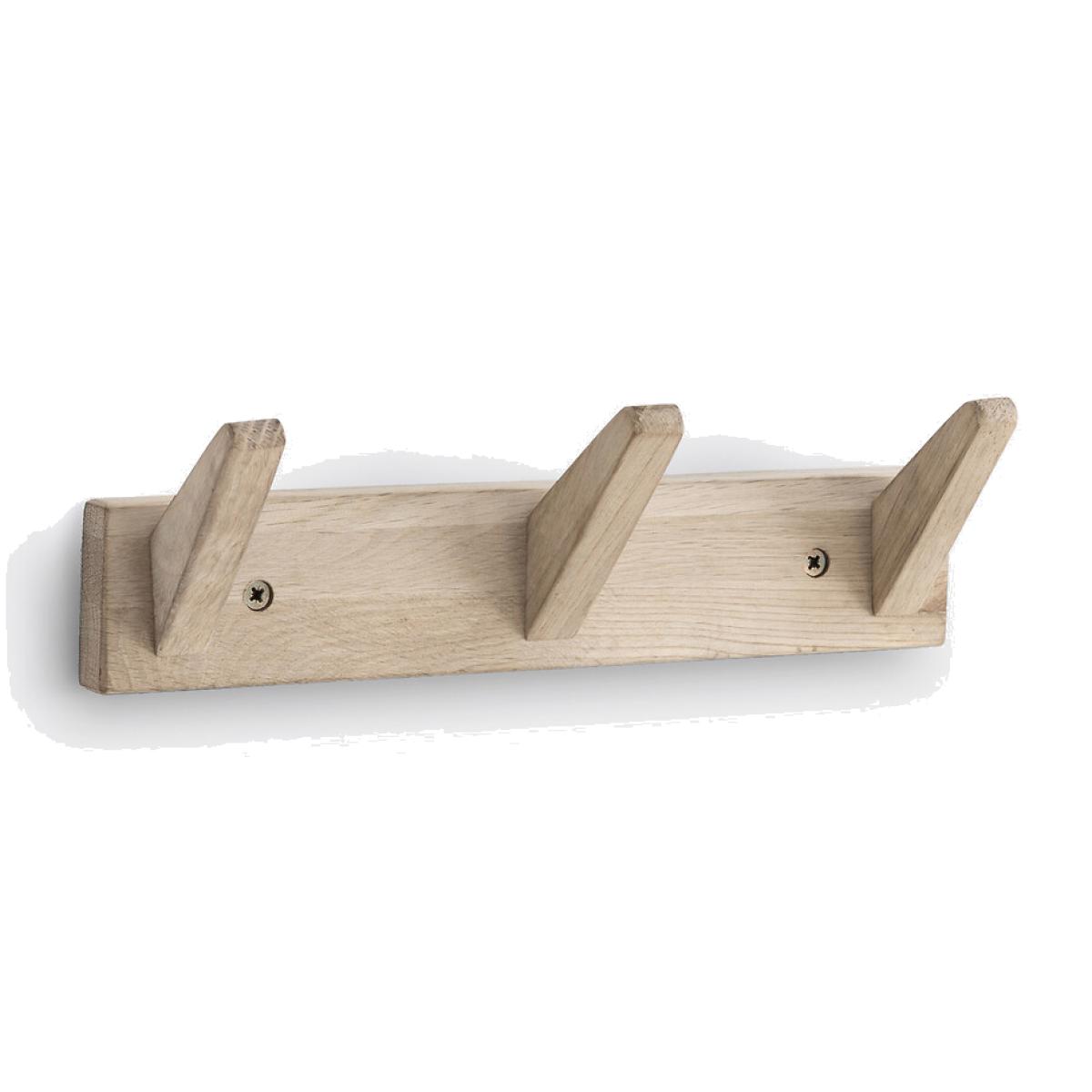 Wall-Mounted Coat Rack with 3 Hooks. Functional, this hook will hold your handbags, jackets and coats. Product Details • Panel with 3 hooks • For wall fixing • Bleached oak finish. Dimensions • Length: 31cm • Depth: 9cm/3.5" • Height of hook : 6cm/2.5" • WOOD FROM SUSTAINABLY MANAGED FORESTS. FSC® certified wood comes from forests that are environmentally, socially and economically well managed. Dimensions and weight of parcel: • 1 parcel • L38 x H10 x D3.5cm, 0.5kg