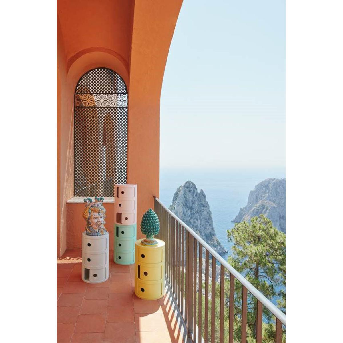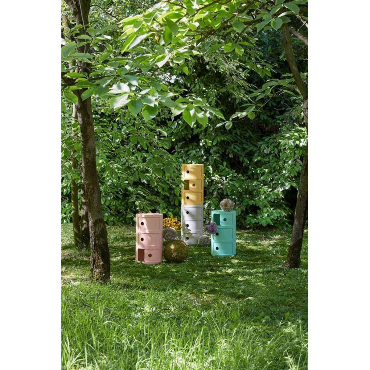 "Kartell loves the planet. A true pioneer, Kartell is holding a green revolution by introducing the first piece of furniture made with Bio-On bioplastics: a material that’s 100% natural and 100% biodegradable. This bioplastic is derived from renewable raw materials (plant waste) which, with the addition of micro-organisms, form a material similar to plastic. This bioplastic guarantees the same thermomechanical properties as traditional plastics with, in addition, the advantage of being completely ecological and entirely (100%) biodegradable in a natural way. It took many years of research to develop this highly technological bioplastic using new ecological chemistry. Kartell embodies Italian excellence around the world. Experimenting with new technologies, which includes innovation in the use of plastics, has always been the linchpin for the innovation of its own products. Claudio Luti, president of Kartel, explains: "Bioplastics research is joining our innovation pathway and is part of the "Kartell loves the planet" project aimed at improving good practices in sustainable development. I’m already looking forward to exploring the future and discovering not only new technologies, but quite different from the products we have made so far. " Kartell chose to use this bioplastic for the first time by reinterpreting an icon from its catalogue: the Componibili. In 1968, designer Anna Castelli Ferreri, wife of Kartell’s founder, created the famous Componibili. The Componibili has been produced for over half a century and has become a real design classic over the passing decades. It has won many prizes and been exhibited at the Museum of Modern Art in New York and the Pompidou Centre in Paris. Compact and versatile, Componibili easily fits into all rooms in the house, on the floor or placed on another piece of furniture. It fulfils several functions: bedside table in the bedroom, end table in the living room, small storage module in the bathroom or kitchen, stool if necessary. It can even be used outdoors. ".
