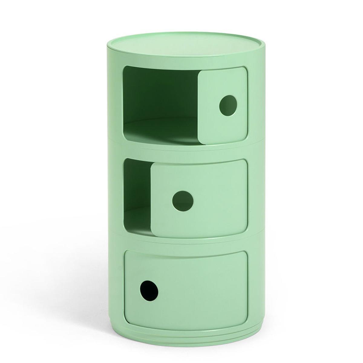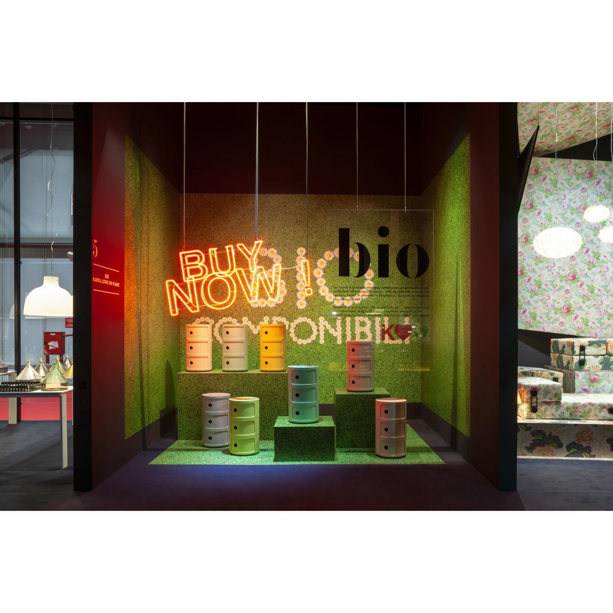 "Kartell loves the planet. A true pioneer, Kartell is holding a green revolution by introducing the first piece of furniture made with Bio-On bioplastics: a material that’s 100% natural and 100% biodegradable. This bioplastic is derived from renewable raw materials (plant waste) which, with the addition of micro-organisms, form a material similar to plastic. This bioplastic guarantees the same thermomechanical properties as traditional plastics with, in addition, the advantage of being completely ecological and entirely (100%) biodegradable in a natural way. It took many years of research to develop this highly technological bioplastic using new ecological chemistry. Kartell embodies Italian excellence around the world. Experimenting with new technologies, which includes innovation in the use of plastics, has always been the linchpin for the innovation of its own products. Claudio Luti, president of Kartel, explains: "Bioplastics research is joining our innovation pathway and is part of the "Kartell loves the planet" project aimed at improving good practices in sustainable development. I’m already looking forward to exploring the future and discovering not only new technologies, but quite different from the products we have made so far. " Kartell chose to use this bioplastic for the first time by reinterpreting an icon from its catalogue: the Componibili. In 1968, designer Anna Castelli Ferreri, wife of Kartell’s founder, created the famous Componibili. The Componibili has been produced for over half a century and has become a real design classic over the passing decades. It has won many prizes and been exhibited at the Museum of Modern Art in New York and the Pompidou Centre in Paris. Compact and versatile, Componibili easily fits into all rooms in the house, on the floor or placed on another piece of furniture. It fulfils several functions: bedside table in the bedroom, end table in the living room, small storage module in the bathroom or kitchen, stool if necessary. It can even be used outdoors. ".
