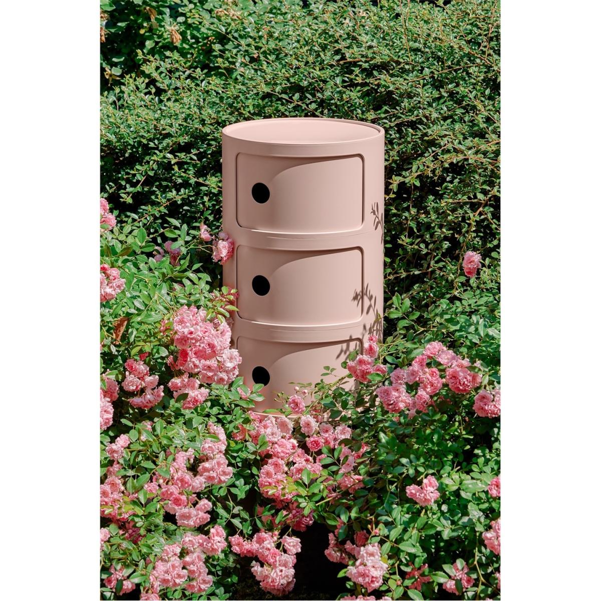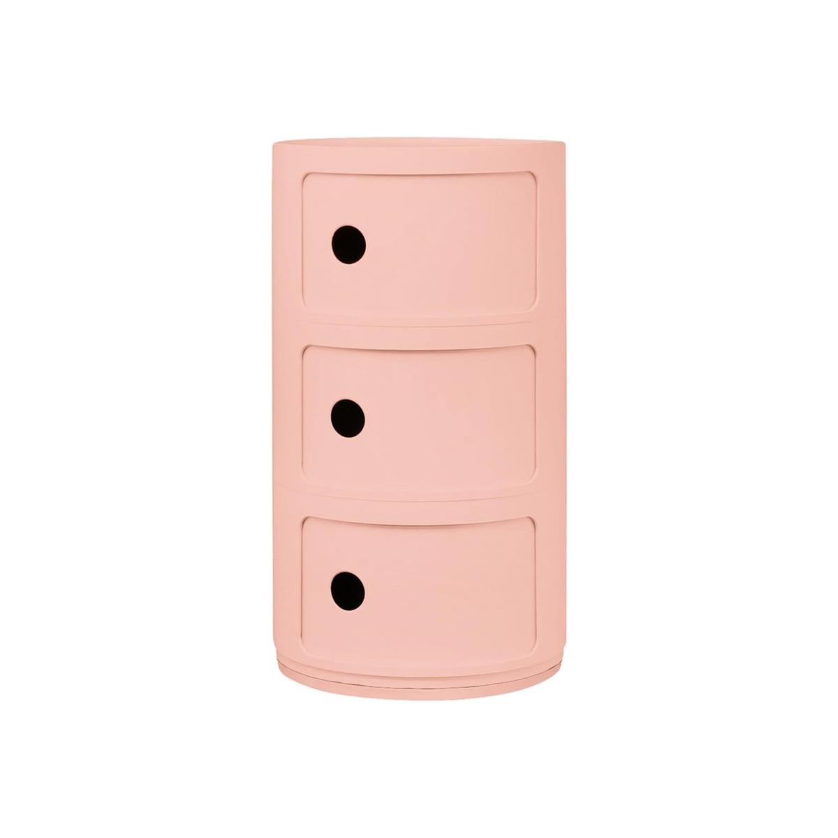 I love the Componibili for its sleek, minimalist design and versatile functionality. It works particularly well in contemporary or Scandinavian-inspired interiors where clean lines and soft pastel tones add subtle colour without overpowering the space. Its curved shape and muted pink hue offer a gentle contrast in neutral bedrooms, creating a calm, inviting environment. When styling, consider pairing it with textured textiles and simple accessories to keep the look fresh and uncluttered. Practical tips include using it to hold essentials like books, a lamp, or skincare products, while its compact size makes it ideal for smaller bedrooms or as a bedside table that offers storage without bulk.