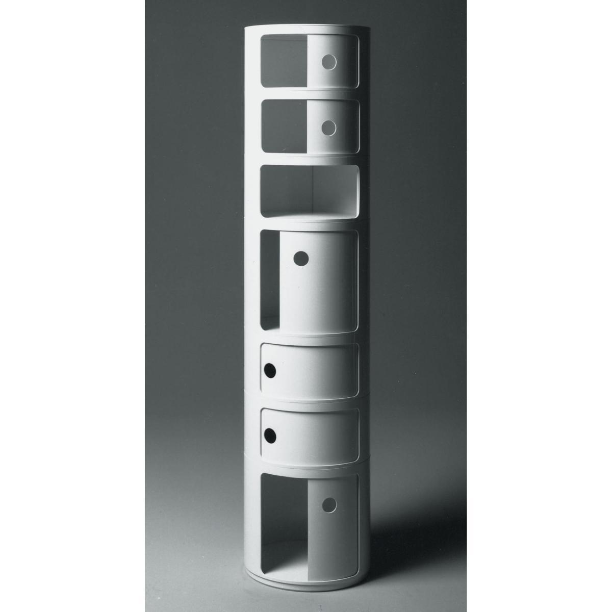 It was in 1968 that designer Anna Castelli Ferreri, wife of the founder of Kartell, created the famous Componibili. This molded plastic cylinder with its sober, functional lines is a symbol of the break that took place in design during the 1960s. Pop, democratic, accessible, bold, practical, modular: this small piece of furniture responds perfectly to the need for a new society defining itself. The Componibili would quickly become a soaring success thanks to its extreme functionality. Compact and versatile, it slips into any room in the house, on the floor or on a piece of furniture. It fulfils several functions: bedside table in the bedroom, side table in the living room, small storage item in the bathroom or kitchen, stool if required. Produced for almost half a century, the Componibili has established itself over the decades as a true design classic. Awarded numerous prizes, it’s exhibited at the Museum of Modern Art in New York and the Pompidou Centre in Paris.