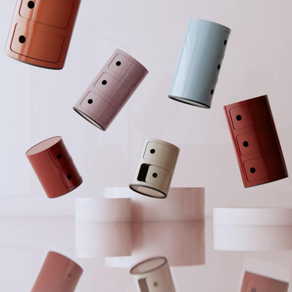 An icon of modular design since 1969 By the end of the 1960s, industrial design was undergoing a veritable revolution. The rise of Plastic materials, driven by new molding techniques and a more democratic approach to furniture, paved the way for bold, accessible and functional creations. In 1969, Anna Castelli Ferrieri, architect and designer, co-founder of Kartell alongside her husband Giulio Castelli, fully embraced this movement by designing the Componibili. A manifesto of democratic, modular designThe Componibili is much more than just a piece of furniture: it embodies a philosophy. At a time when domestic furniture must adapt to new urban lifestyles, it responds to a quest for flexibility and space optimization. Its design is based on a stackable cylindrical construction, offering unprecedented modularity. Thanks to a system of integrated circular runners, each Unit can be assembled without constraint, offering a scalable, customizable storage solution. With this approach, Anna Castelli Ferrieri breaks away from traditional solid furniture and proposes a functional, playful and accessible design. Her work is part of the radical Italian design movement, which challenges the established norms of bourgeois furniture by advocating innovation, color and lightness of form. An iconic piece celebrated by museumsThe Componibili was an immediate success, becoming a contemporary furniture staple. Its sober, uncluttered aesthetic appealed to design enthusiasts and interior architecture professionals alike. Its impact was such that it became part of the permanent collections of the most prestigious institutions, including the Museum of Modern Art (MoM. A) in New York and the Centre Pompidou in Paris. These distinctions testify to its major role in the history of industrial design and its status as a timeless classic. Versatility and timelessness: a contemporary design essentialBeyond its historical heritage, Componibili is perfectly adapted to today's needs. Its compact size means it can fit into any room: Bedside table in a minimalist bedroom, Occasional furniture in a contemporary living room, Storage space in a streamlined bathroom, Modular storage unit in a Desk or hallway. Available in a palette of sophisticated colors - Burgundy, Turtledove grey, Sky blue, Mauve and Orange - it adapts to the most demanding interiors while retaining its pop, functional DNA. Why choose Kartell's Componibili? Investing in the Componibili means choosing a piece of furniture that transcends trends. Its emblematic design, conceived over fifty years ago, remains astonishingly modern. It perfectly illustrates the fusion of technological innovation and timeless aesthetics. A flagship piece of modular furniture, celebrated for its flexibility and adaptability, the Componibili continues to seduce designers and enlightened enthusiasts alike. With this cult piece, Kartell proves once again that Italian design knows how to combine functionality, elegance and ingenuity. Add a touch of history and innovation to your interior with the Componibili, and let yourself be seduced by an industrial design classic. In detail: Variation : Dove grey Brand : Kartell Designer : Anna Castelli Ferrieri Type : Storage Colour : Dove grey Material : ABS Dimensions : Ø 32 cm x H 40 cm Weight : 4.62 lb Characteristics : Creation date: 1968 - Made in Italy - Italian design icon - Exhibited at the Museum of Modern Art in New York and the Centre Pompidou in Paris - 2 drawers with sliding doors Country of Manufacture : Italy Show less