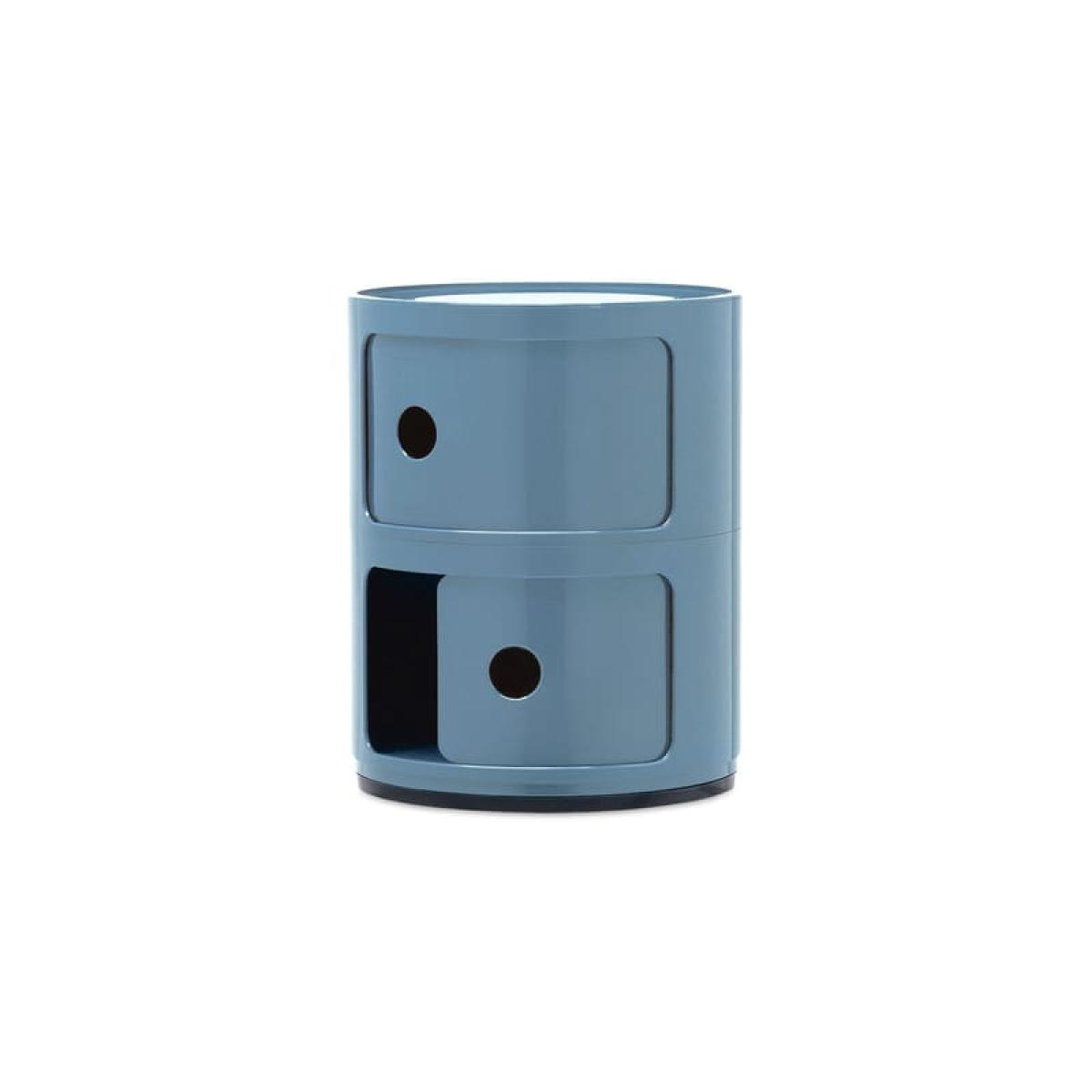 An icon of modular design since 1969 By the end of the 1960s, industrial design was undergoing a veritable revolution. The rise of Plastic materials, driven by new molding techniques and a more democratic approach to furniture, paved the way for bold, accessible and functional creations. In 1969, Anna Castelli Ferrieri, architect and designer, co-founder of Kartell alongside her husband Giulio Castelli, fully embraced this movement by designing the Componibili. A manifesto of democratic, modular designThe Componibili is much more than just a piece of furniture: it embodies a philosophy. At a time when domestic furniture must adapt to new urban lifestyles, it responds to a quest for flexibility and space optimization. Its design is based on a stackable cylindrical construction, offering unprecedented modularity. Thanks to a system of integrated circular runners, each Unit can be assembled without constraint, offering a scalable, customizable storage solution. With this approach, Anna Castelli Ferrieri breaks away from traditional solid furniture and proposes a functional, playful and accessible design. Her work is part of the radical Italian design movement, which challenges the established norms of bourgeois furniture by advocating innovation, color and lightness of form. An iconic piece celebrated by museumsThe Componibili was an immediate success, becoming a must-have piece of contemporary furniture. Its sober, uncluttered aesthetic appealed to design enthusiasts and interior architecture professionals alike. Its impact was such that it became part of the permanent collections of the most prestigious institutions, including the Museum of Modern Art (MoM. A) in New York and the Centre Pompidou in Paris. These distinctions testify to its major role in the history of industrial design and its status as a timeless classic. Versatility and timelessness: a contemporary design essentialBeyond its historical heritage, Componibili is perfectly adapted to today's needs. Its compact size means it can fit into any room: Bedside table in a minimalist bedroom, Occasional furniture in a contemporary living room, Storage space in a streamlined bathroom, Modular storage unit in a Desk or hallway. Available in a palette of sophisticated colors - Burgundy, Turtledove grey, Sky blue, Mauve and Orange - it adapts to the most demanding interiors while retaining its pop, functional DNA. Why choose Kartell's Componibili? Investing in the Componibili means choosing a piece of furniture that transcends trends. Its emblematic design, conceived over fifty years ago, remains astonishingly modern. It perfectly illustrates the fusion of technological innovation and timeless aesthetics. A flagship piece of modular furniture, celebrated for its flexibility and adaptability, the Componibili continues to seduce designers and enlightened enthusiasts alike. With this cult piece, Kartell proves once again that Italian design knows how to combine functionality, elegance and ingenuity. Add a touch of history and innovation to your interior with the Componibili, and let yourself be seduced by an industrial design classic. In detail: Variation : Sky blue Brand : Kartell Designer : Anna Castelli Ferrieri Type : Storage Colour :Sky blue Material : ABS Dimensions :Ø 32 cm x H 40 cm Weight : 4.62 lb Characteristics : Creation date: 1968 - Made in Italy - Italian design icon - Exhibited at the Museum of Modern Art in New York and the Centre Pompidou in Paris - 2 drawers with sliding doors Country of Manufacture : Italy Show less