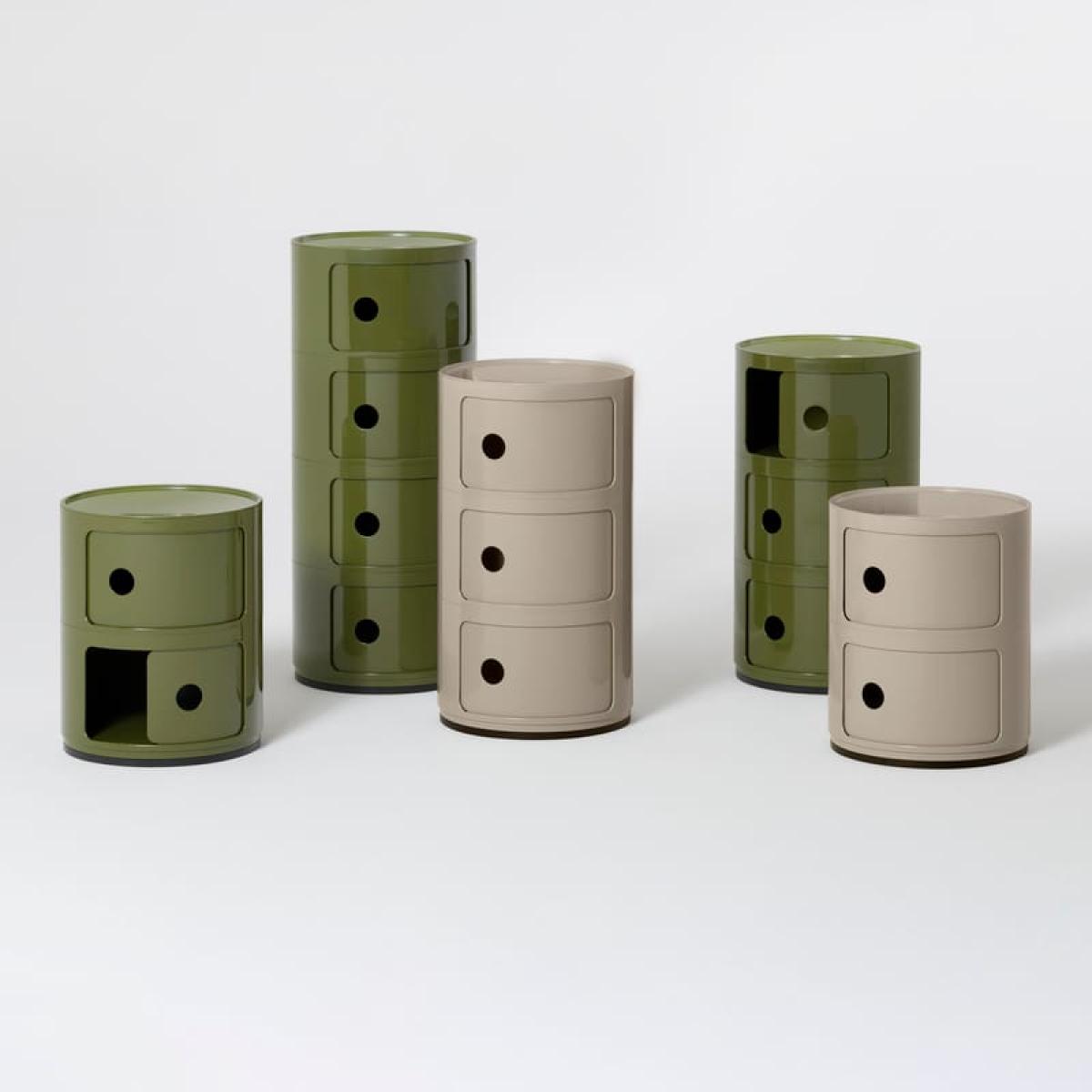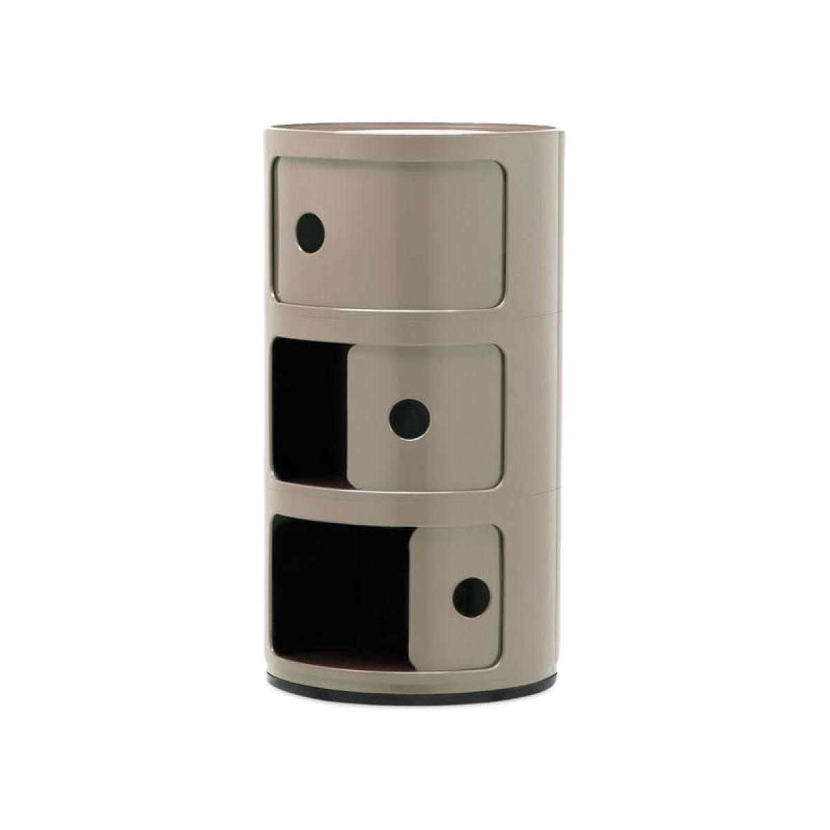 A true design icon, the famous Componibili is adorned with vibrant, deep and elegant new colors: Burgundy, Dove grey, Sky blue, Mauve and Orange. It was in 1968 that designer Anna Castelli Ferreri, wife of the founder of Kartell, created the famous Componibili. This molded plastic cylinder with its sober, functional lines is a symbol of the breakthrough in design that took place in the 1960s. Pop, democratic, accessible, daring, practical, modular: this small piece of furniture fully meets the needs of a new society taking shape. The Componibili was soon to enjoy growing success thanks to its extreme functionality. Compact and versatile, it fits into any room in the house, on the Earth or on a piece of furniture. It can be used as a bedside table in the bedroom, an end table in the living room, a small storage unit in the bathroom or kitchen, or as a stool if required...Produced for almost half a century, the Componibili has established itself over the decades as a true design classic. Winner of numerous awards, it is exhibited at the Museum of Modern Art in New York and the Centre Pompidou in Paris. In detail: Variation : Dove grey Brand : Kartell Designer : Anna Castelli Ferrieri Type : Storage Colour : Dove grey Material : ABS Dimensions : Ø 32 cm x H 58.5 cm Weight : 6.93 lb Characteristics : Creation date: 1968 - Made in Italy - Italian design icon - Exhibited at the Museum of Modern Art in New York and the Centre Pompidou in Paris - 3 drawers with sliding doors Country of Manufacture : Italy Show less