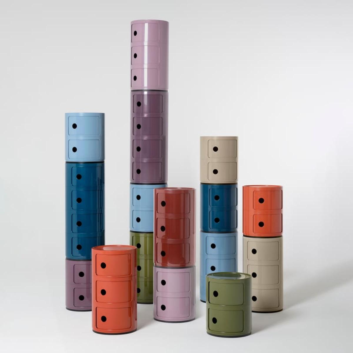A true design icon, the famous Componibili is adorned with vibrant, deep and elegant new colors: Burgundy, Dove grey, Sky blue, Mauve and Orange.