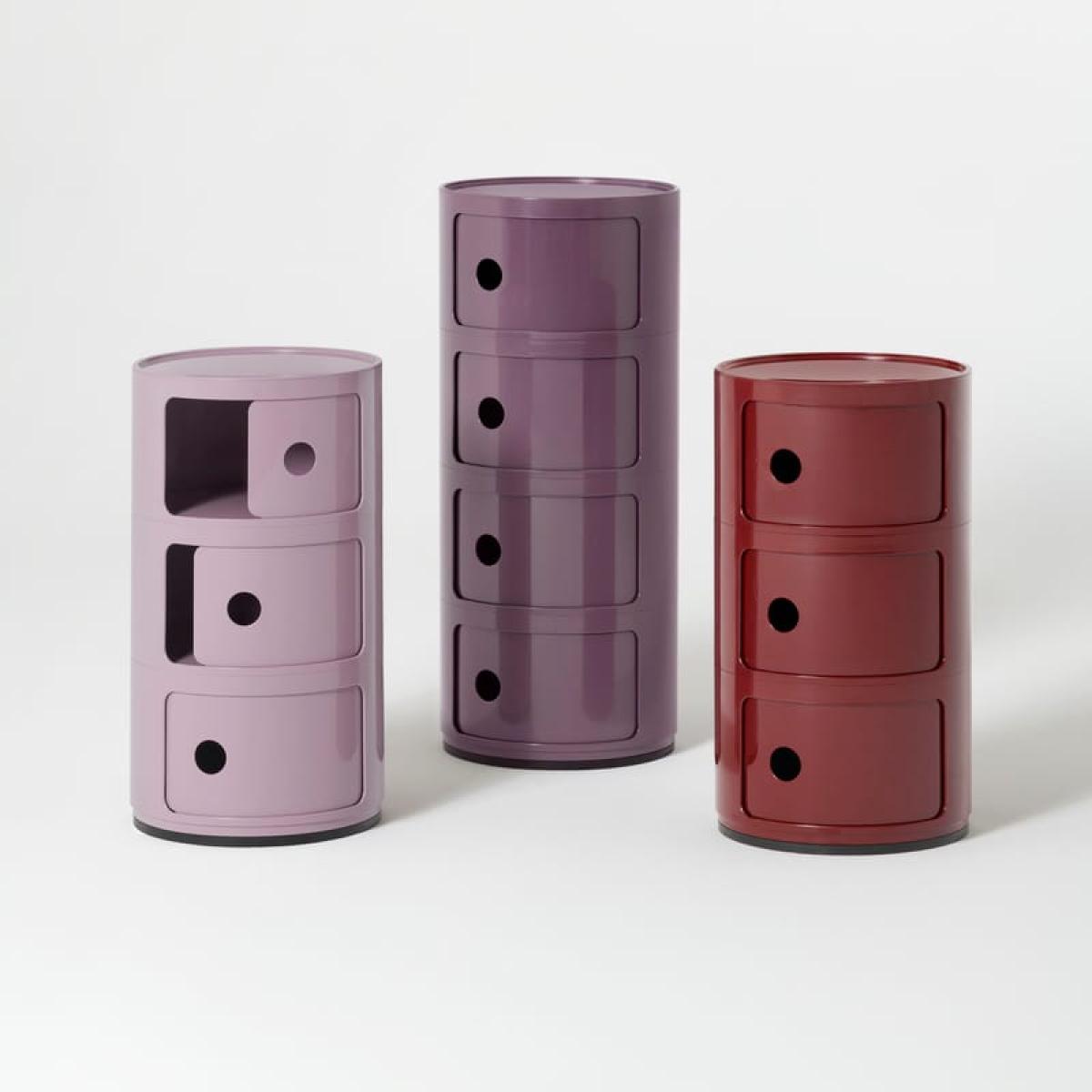 A true design icon, the famous Componibili is adorned with vibrant, deep and elegant new colors: Burgundy, Dove grey, Sky blue, Mauve and Orange.