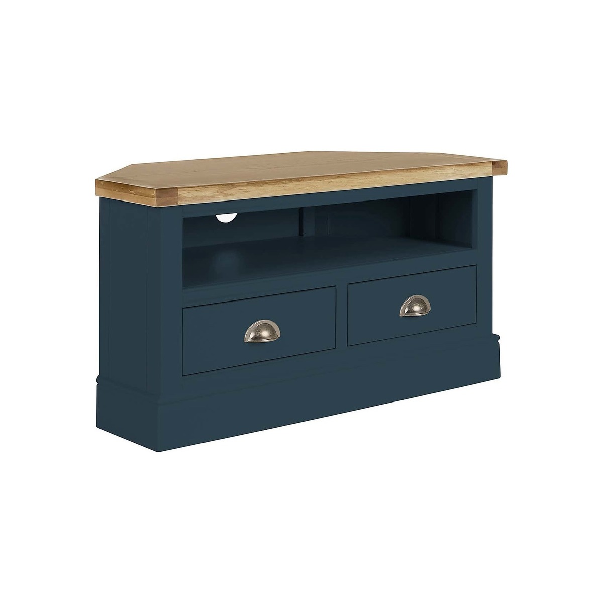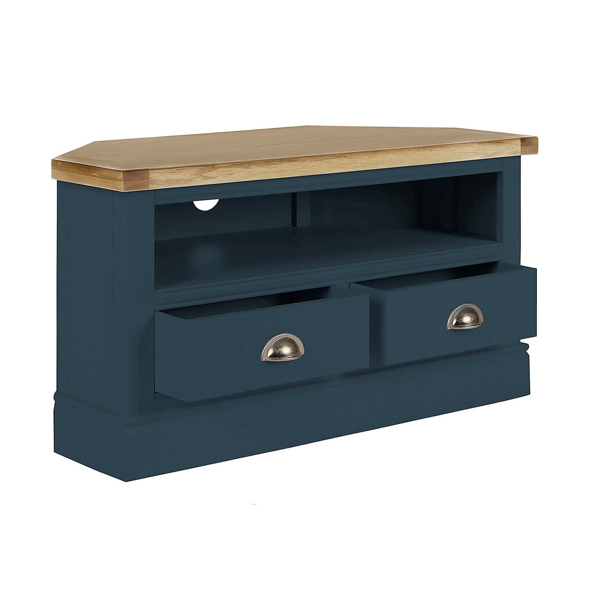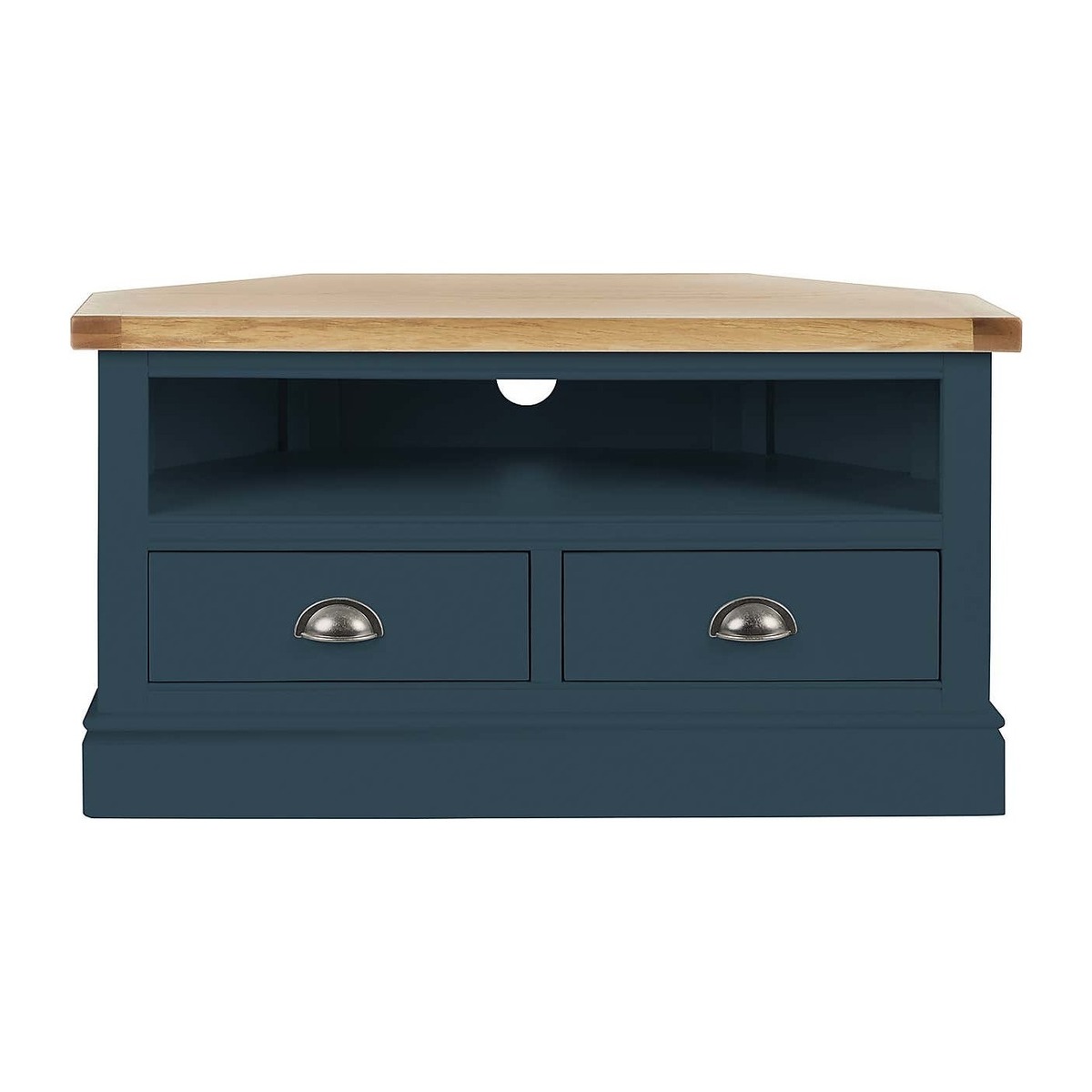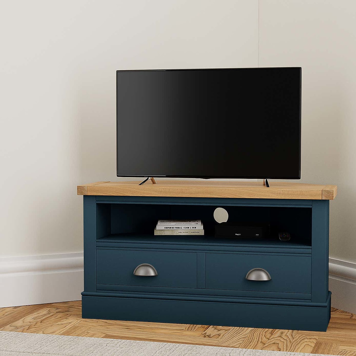 The Compton corner TV unit in blue offers a modern yet versatile look that works well in both contemporary and traditional interiors. I love its rich colour, which adds a pop of personality without overwhelming the space. Its compact size makes it perfect for smaller living rooms or cosy corners, while the practical drawers and open shelf provide ample storage for remotes, manuals, or decorative accessories. To style it effectively, pair with neutral-toned soft furnishings and a few curated decorative pieces to create a balanced and cohesive look. It’s especially suitable for spaces aiming for a smart, colourful focal point that doesn’t compromise on practicality.