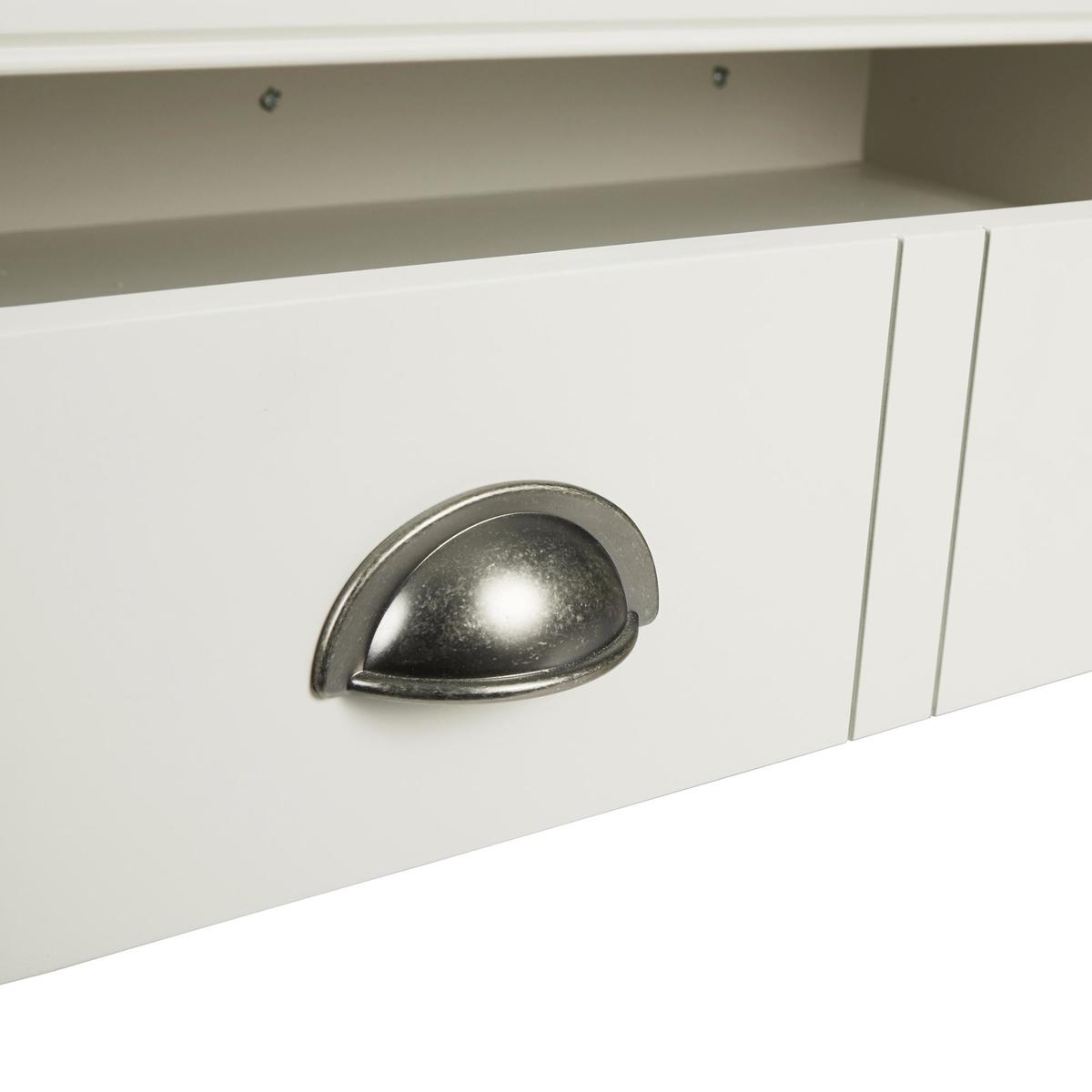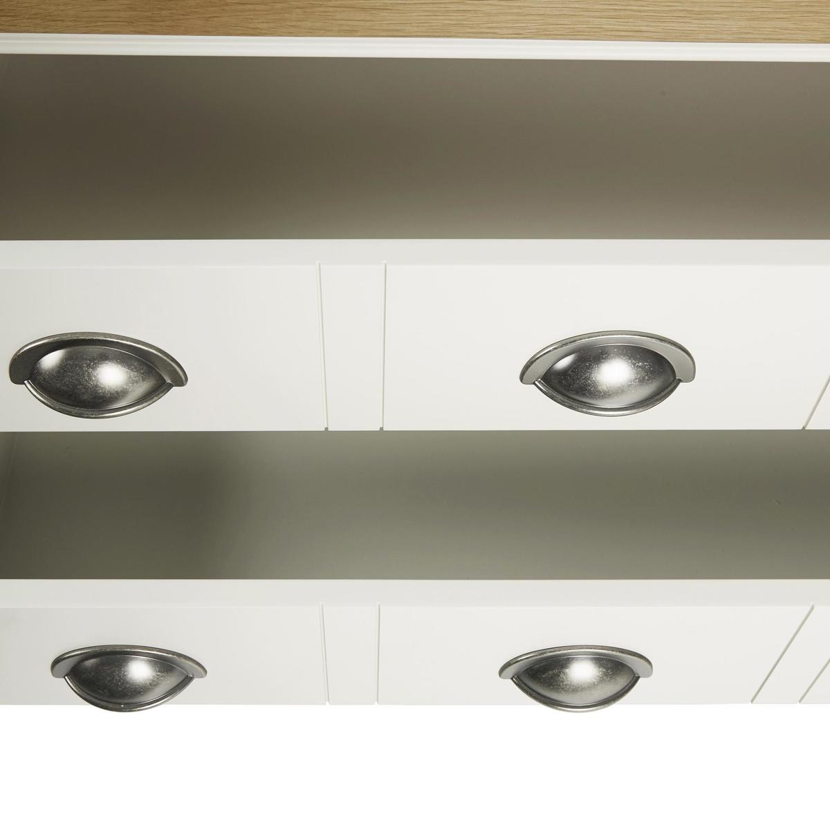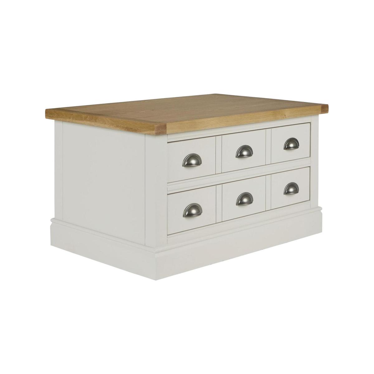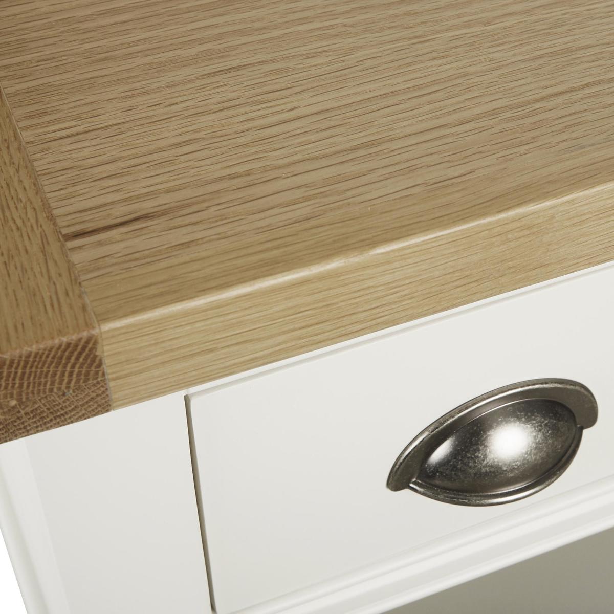 Dunelm Exclusive – Designed and Developed by Dunelm. Inspired by clean and simplistic styling with a natural look that will compliment a host of interiors, the charming Compton range features natural solid oak and thick oak veneer tops accompanied with an elegant ivory painted finish. Crafted with classic antique brass cup handles, this range is designed with solid pine wood legs. Featuring clean lines for a classic aesthetic, this fully assembled coffee table offers an appealingly smooth feel and features two spacious drawers with a unique runner mechanism, which allows you to access the drawer from both sides.
