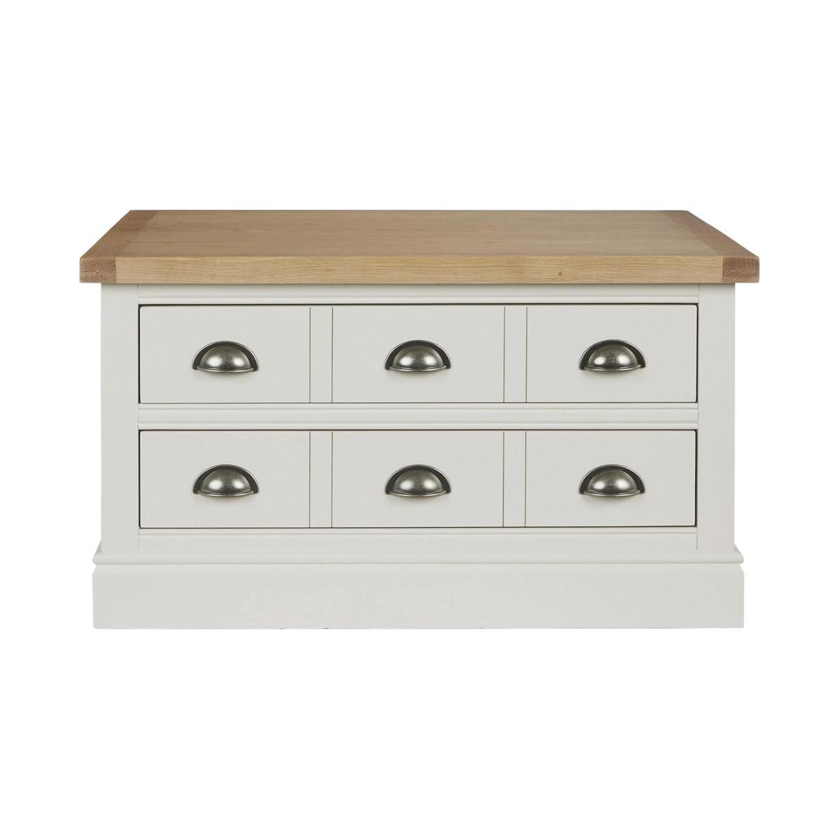 I love this coffee table for its versatile and classic design, making it a practical centrepiece in a range of interiors. Its ivory colour offers a neutral backdrop, perfect for bright, airy living rooms or cosy, traditional spaces. The wooden top adds warmth and texture, making it suitable for both contemporary and cottage-inspired schemes. Practical styling tips include using it to display a mix of decorative books, small plants, or candles, which can be easily swapped out to refresh the look. Its drawers also provide handy storage for remotes or everyday essentials, keeping the space tidy without sacrificing style.