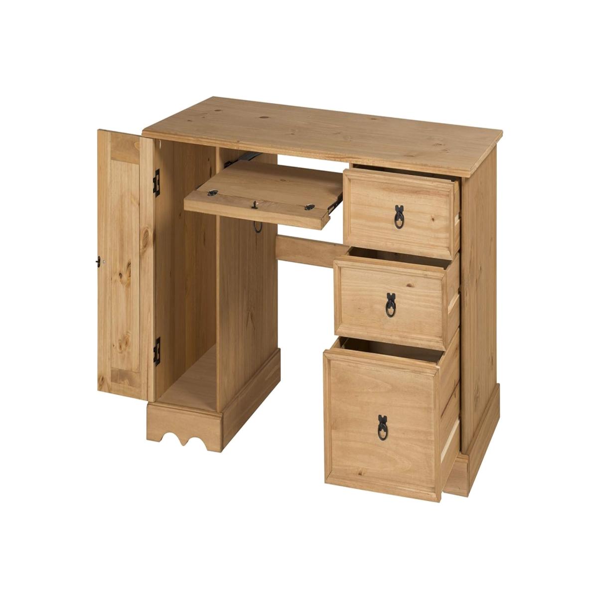 Upgrade your workspace with the Corona straight computer desk crafted from solid pine wood. Featuring a rustic waxed finish and turned legs, this desk blends charm with functionality. Four spacious drawers glide smoothly on wooden runners. Supplied flat pack for easy assembly, it is ideal for home offices needing natural warmth and timeless design.