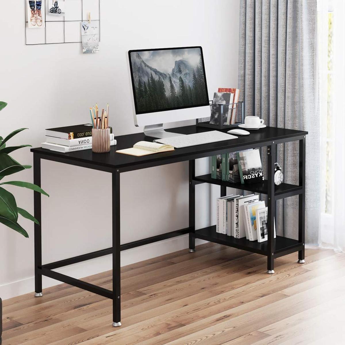 Computer Desk With 2 Storage Shelves For Home Office Working - Black