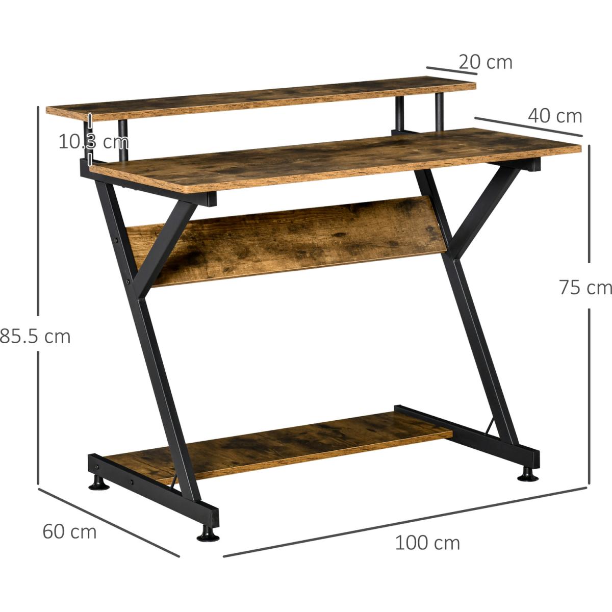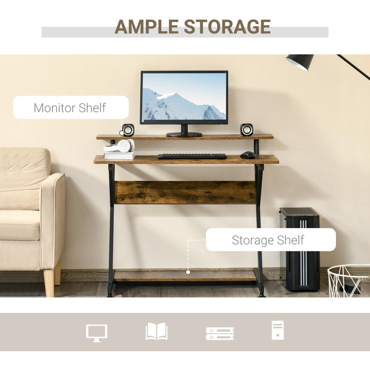 Computer Desk with Monitor Shelf and Storage - Brown / 100cm
