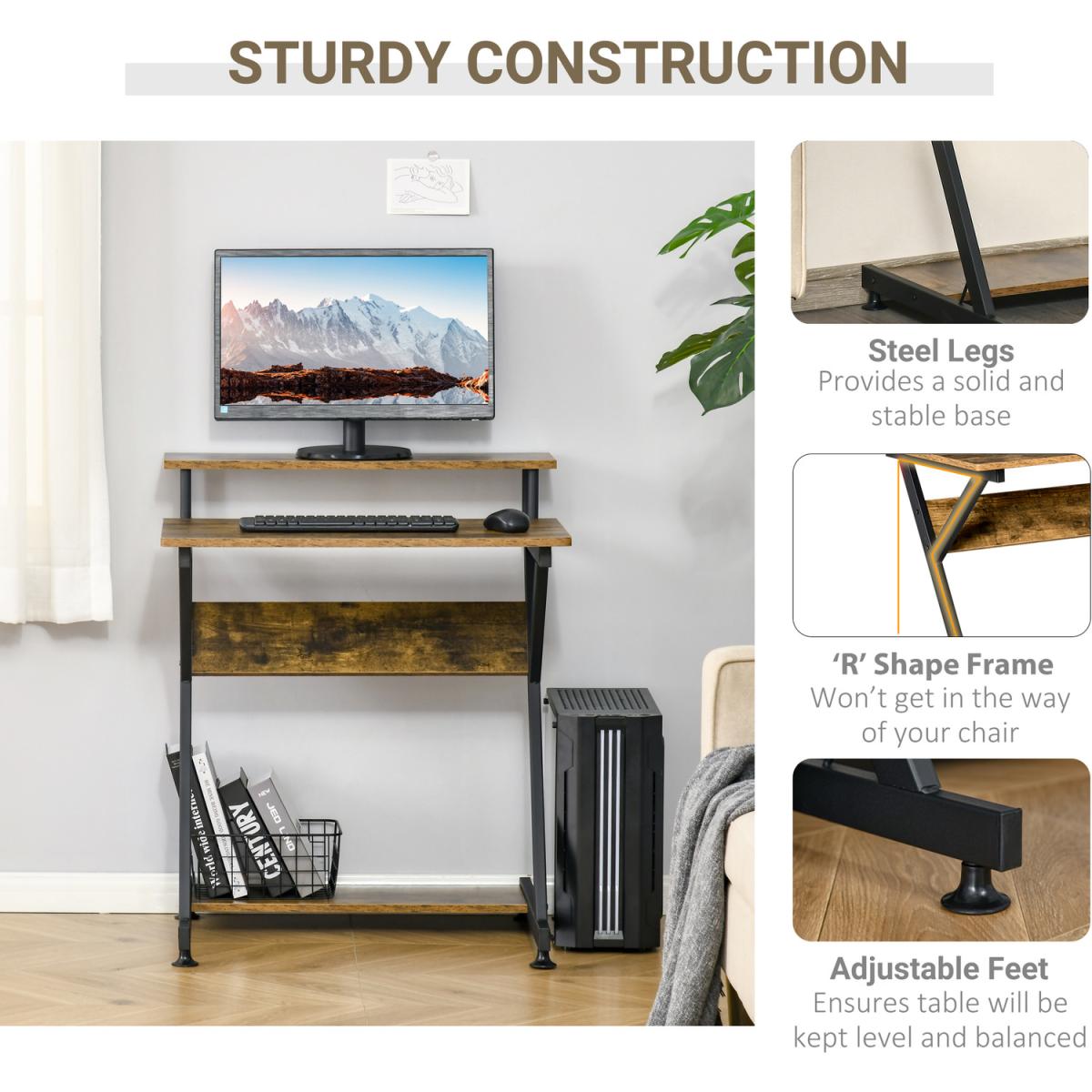 An all-rounder desk, made to support you for whatever you do - this HOMCOM desk will ensure you get the most out of your space. Made from metal, the sturdy frame is fully supportive, with adjustable feet for continual balance - giving you peace of mind as you concentrate. Compact design occupies less space and 2-tier shelf gives you enough room for working, studying or gaming. Comes complete with a handy top and bottom shelf.