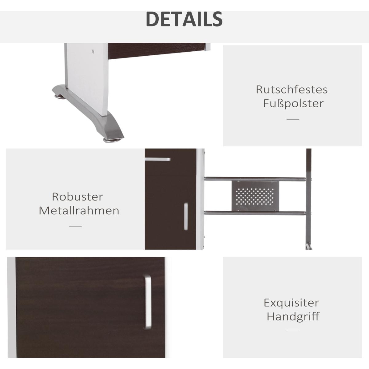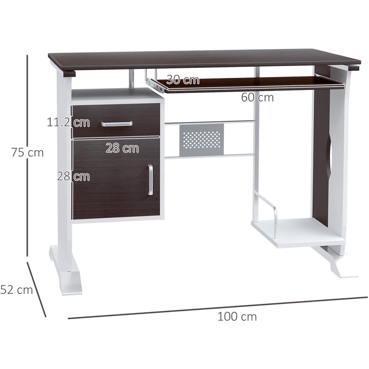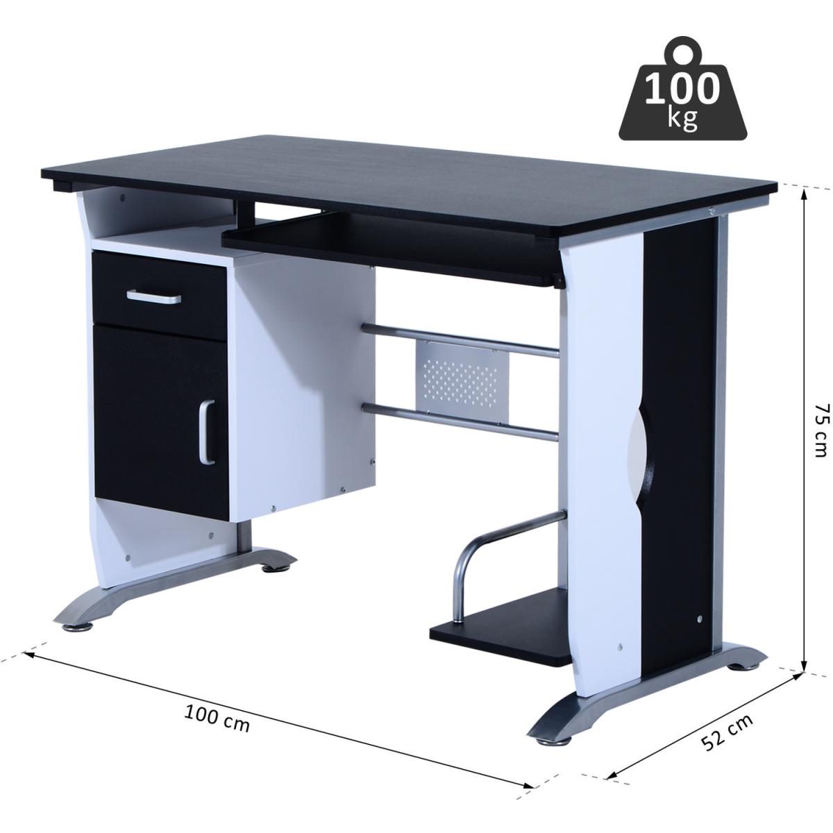 This stylish computer desk is constructed using high-quality steel and MDF. It has a compact design to use the smallest amount of space, so great for small rooms. Comes with a sliding tray for your keyboard and a large convenient workspace for your monitor and any other items for daily work. There is a small drawer and cabinet to keep your stationery or any personal belongings. Comes complete with anti-slip feet to make your desk more stable and secure. This desk can be used for both home and office environment.