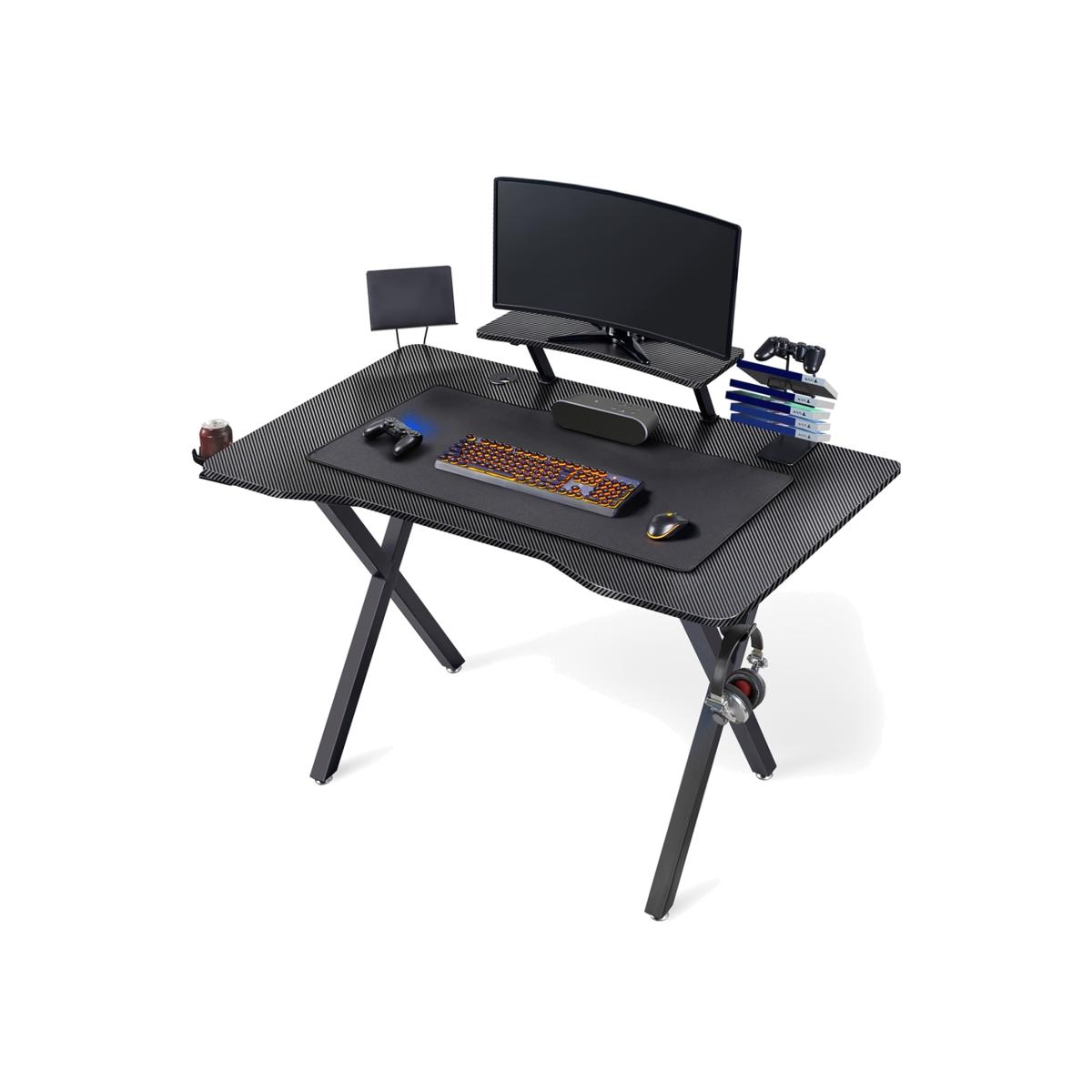 We have all the features that are built especially for your gaming gear, a built-in cup holder, headphone hook, data cable arranger, charging stand for your tablets, game storage rack, large-sized mouse pad, and an elevated shelf. X-shaped metal legs are sturdy and stable without wobbling. A simple and edging look is suitable for most decoration styles. The large workstation surface is compatible with most monitor sizes on the market. Multiple built-in features give this desk the versatility to meet the needs of all kinds of hobbies.