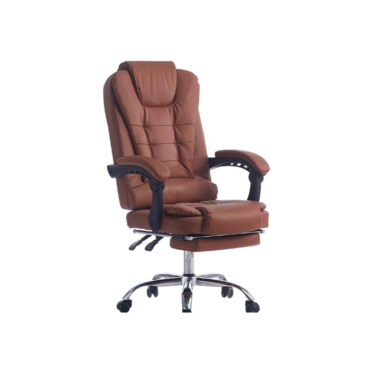 Our office chair is constructed using long-lasting materials, such as high-quality PU leather and a durable sponge. This chair is ideal for individuals whose height ranges from 150-185cm and has a weight capacity of 130 kg. The backrest of this desk chair has a convenient tilt function that enables the chair to recline 135 degrees and lock, providing a comfortable place to rest when fatigued from work. The chair features a thickened backrest and cushion that provides a sofa-like feel. It also has a 360-degree rotation, allowing for easy manoeuvrability when getting up from the desk. Furthermore, the chair's installed wheels are noiseless and floor-friendly, preventing damage to the floor during movement.