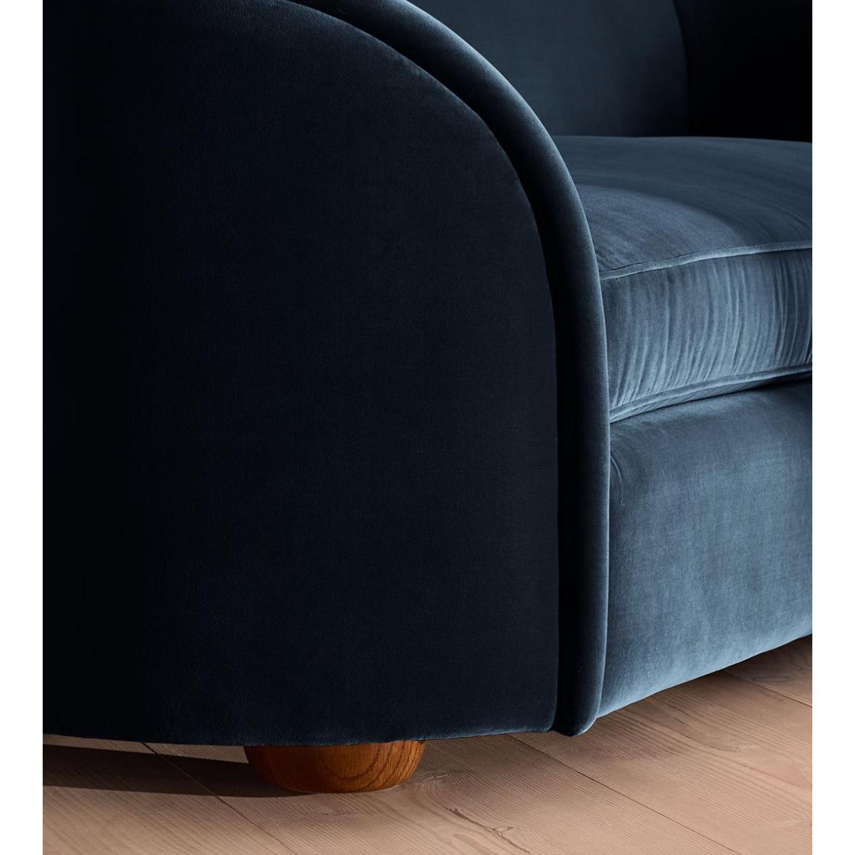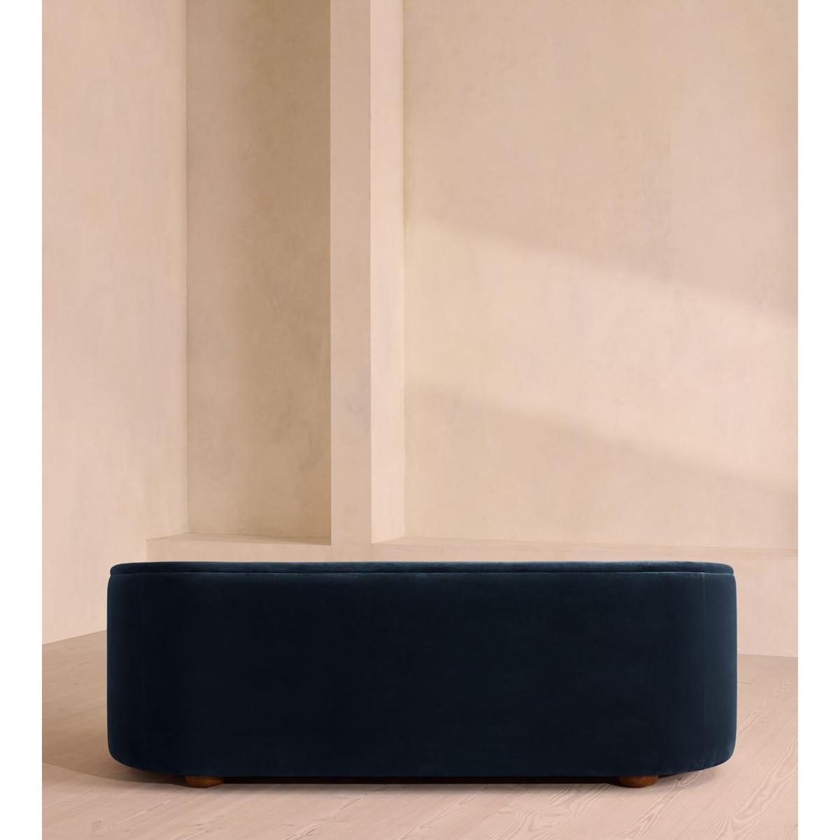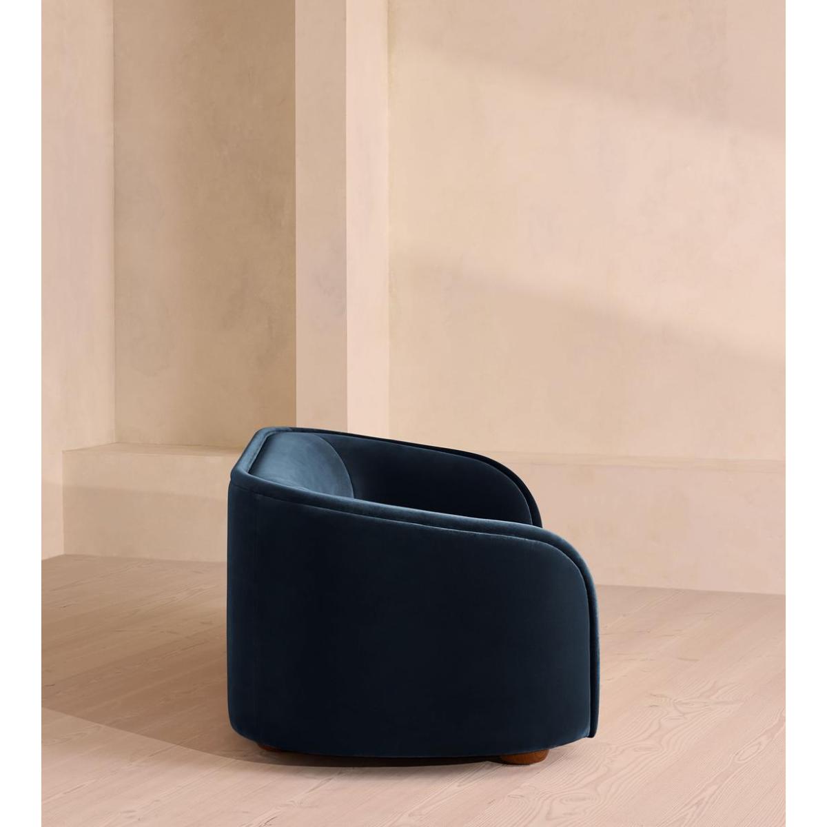 A curved backrest leads seamlessly into two arms to create a minimalist, cocooning shape. A seamless seat cushion alongside unified back and armrests give the Conall sofa a streamlined, minimalist silhouette, while the rounded sides keep it feeling cosy. It's fully upholstered in velvet, available in our full made-to-order palette, with bold, oversized piping following its curved lines.