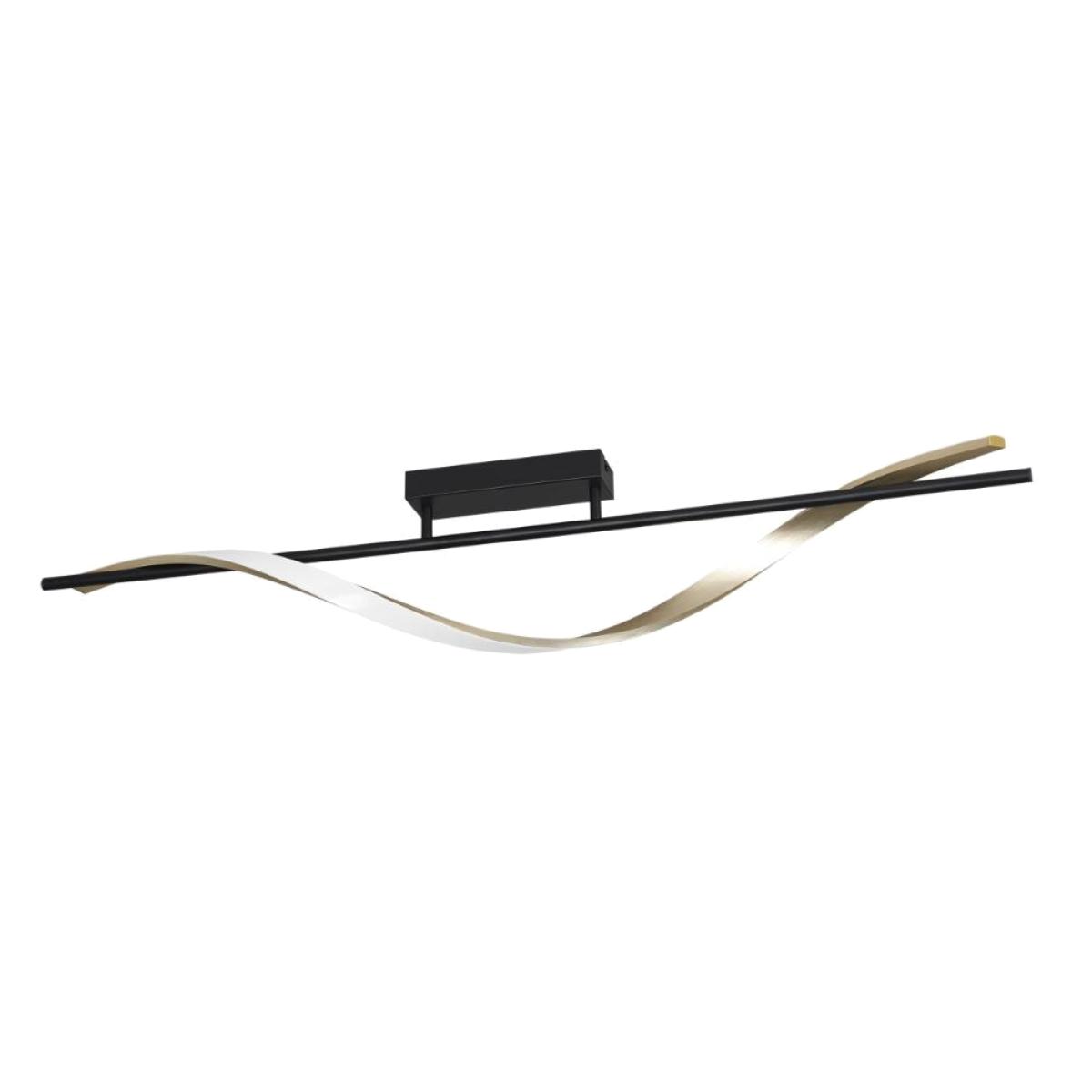 The Conaprato Black LED Semi-Flush Ceiling Light ceiling light impresses with a harmoniously curved line of light that is reminiscent of a stylised ribbon. The body of the lamp is finished in elegant black, while the LED light strip in brushed brass creates a noble contrast. The colour temperature can be infinitely adjusted from warm white to daylight white via the supplied remote control – ideal for different living situations. The brightness can also be conveniently adjusted, so that the luminaire offers both functional light and atmospheric lighting. Its slender shape makes it the ideal element for modern living or dining areas. The permanently installed LED technology ensures a long service life and low energy consumption.