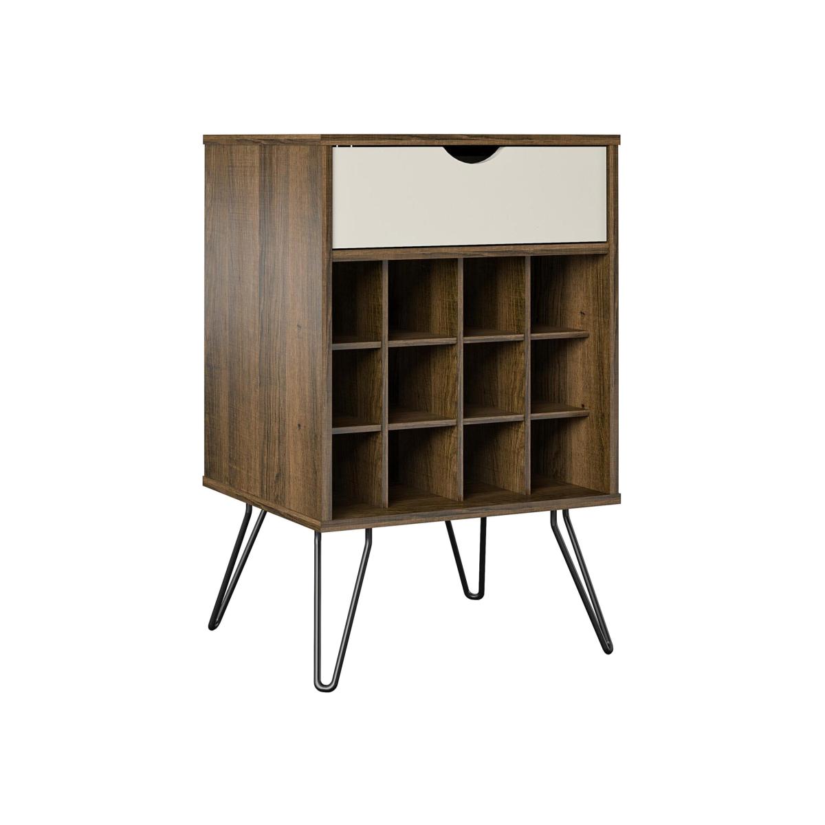 Give your living room or entertainment space a retro look with the Novogratz Concord Beverage Storage Stand. Inspired by mid-century design, the woodgrain chassis and drawer front with brown undertones on the laminated MDF and particleboard give the Stand a sturdy build that will last for years while the black metal hairpin legs add a retro twist.