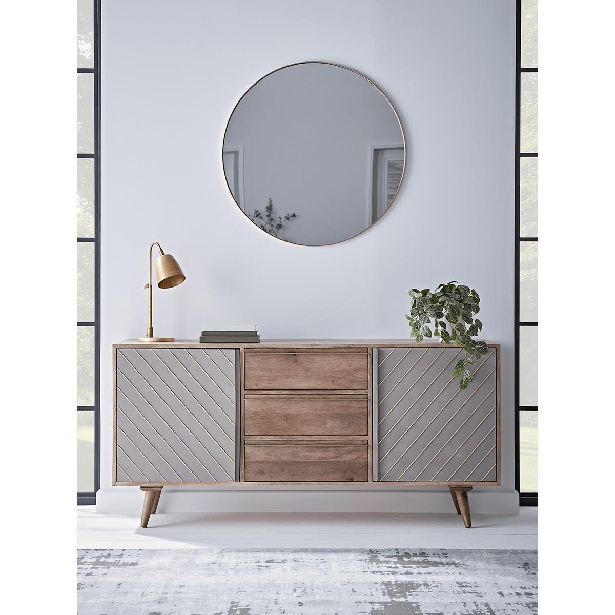 I love this sideboard for its modern yet versatile look. The concrete and brass elements give it a contemporary edge, making it perfect for industrial or minimalist interiors, but it can also add a chic contrast in softer, Scandi or boho spaces. It works well as a statement piece in a living room or dining area, offering plenty of storage while maintaining a clean aesthetic. For styling, I’d suggest balancing its utilitarian vibe with warm textures like a woven rug or soft cushions nearby, and adding some decorative accents or greenery on top to soften the look. Since it’s quite pared back, it's easy to personalise with colours and accessories to suit your space without overwhelming it.
