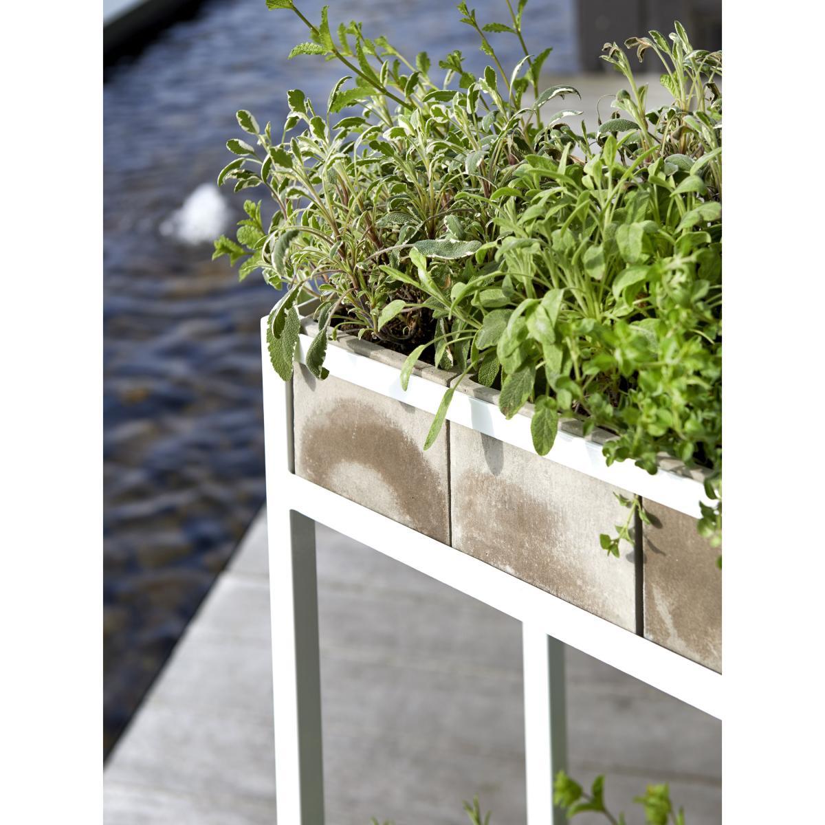This concrete flower pot with hole is adapted to the Herb console (console sold separately). These beautifully functional consoles are fitted with cement inserts to compartmentalize your plants. The frame is white powdered-coated steel and suitable for outdoor use. Perfect for herbs!.