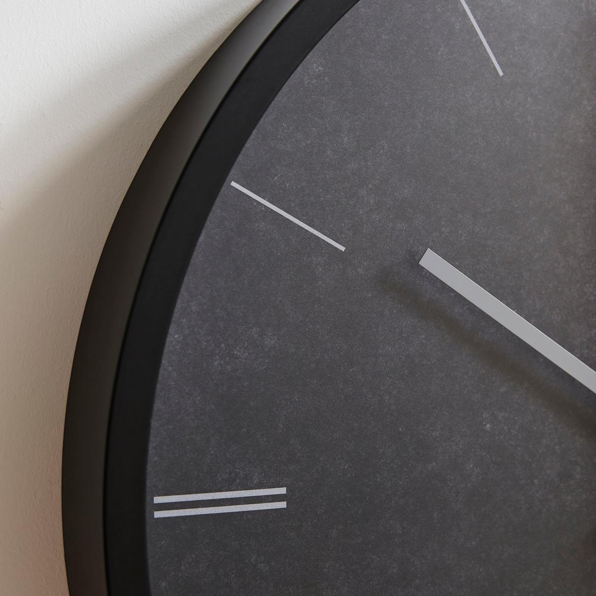 * Sleek, Modern Design* Bold Charcoal Colourway* Requires 1 x AA Battery (Not Included)Bring sleek, modern vibes to your home with the eye-catching Concrete Effect Round Wall Clock. Dressed in a striking charcoal colourway, this clock features a black rim, an analogue display and minimalist-inspired time indicators.