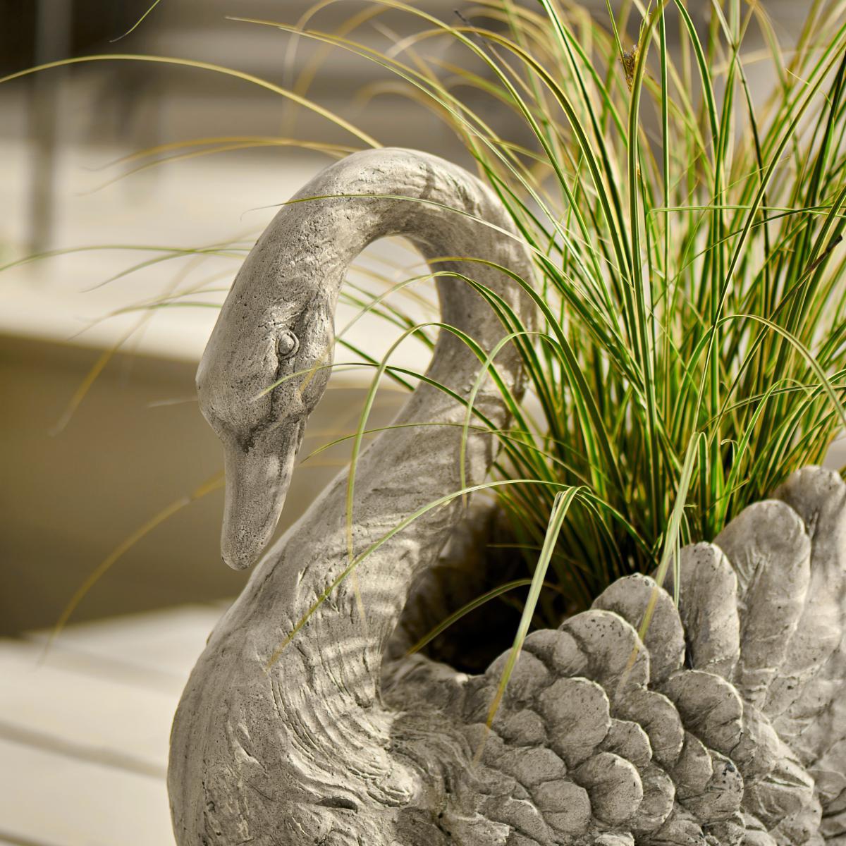 Concrete Finish Swan Planter Grey