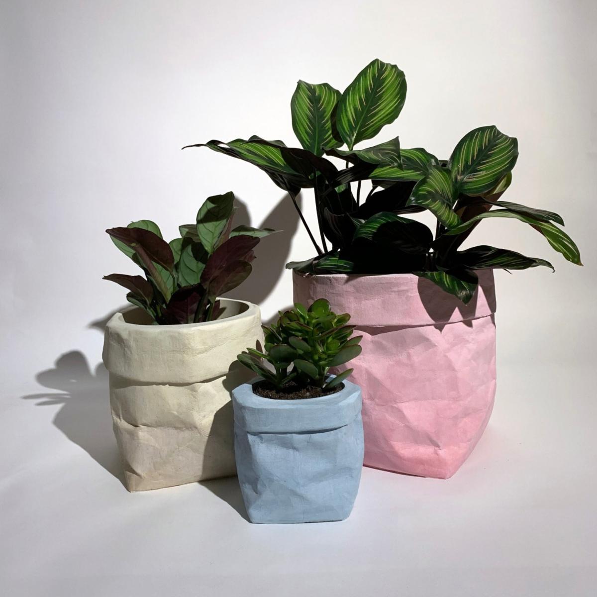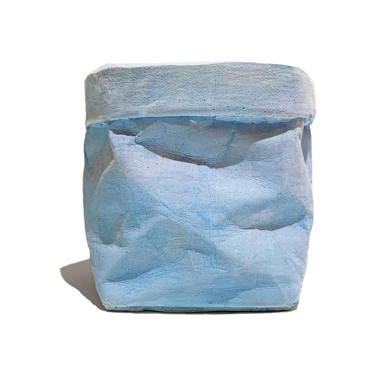 Exhibited in the London Design Fair, the Paper Bag Planter is handcrafted from pigmented cement and fine sand. Its pastel colour makes a subtle statement to your home and garden. The Planter is dyed with pigments before pouring into a mould and cured for 48 hours. It is then sanded and polished to achieve a refined finish. Comes with a cork base is attached to each piece to prevent scratching. L11cm x D9cm x H10cm Internal Size: Able to fit plant pot up to 6.5cm in diameter and up to 6.5cm deep Please note that plant is for illustrative purpose only and is not included. The Planter is a decorative pot and does not have drainage holes.