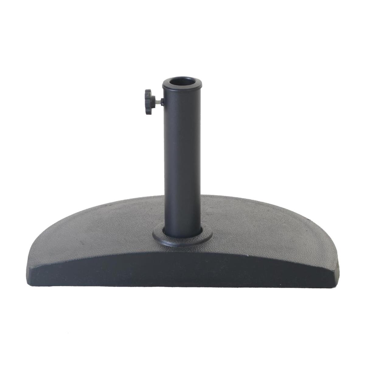 This umbrella base is perfect for half canopy umbrellas. Add some style to your garden and use to create shade in awkward or small places. This half base fits perfectly against flat surfaces such as walls and fences while being weighted enough to hold up your half umbrella. Sitting flush against a wall, will leave you more space to relax and enjoy the weather. Concrete Parasol Half Base - Grey