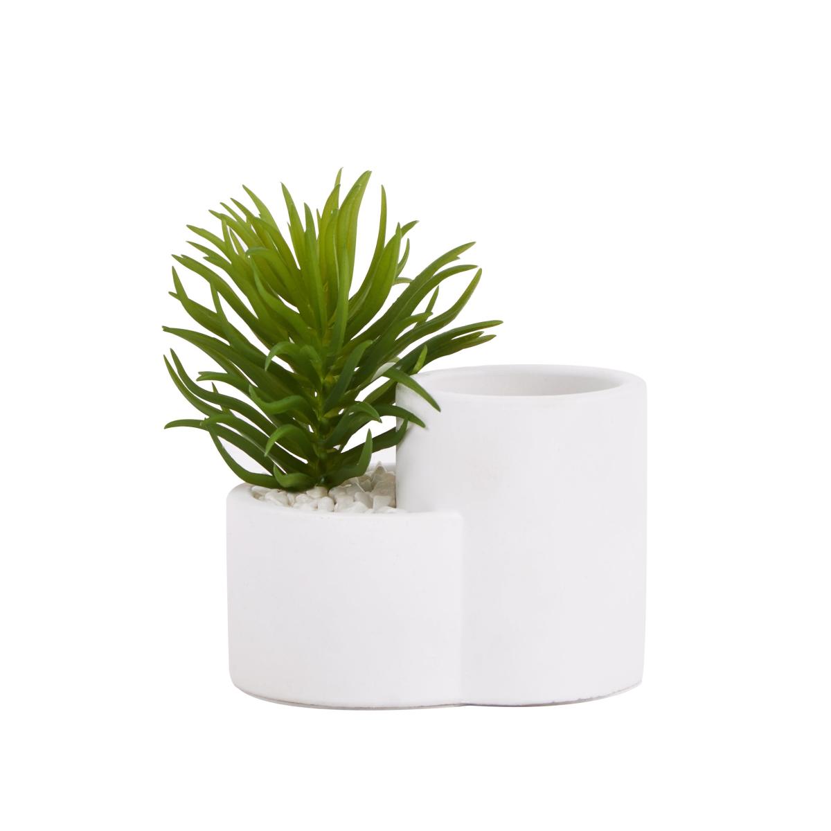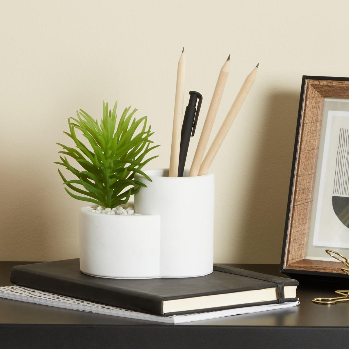 Add a contemporary look to your home with this stylish concrete planter with a pen pot. The concrete planter has a modern design and is ideal for holding stationary, making it ideal for display on shelves, desks and tables.