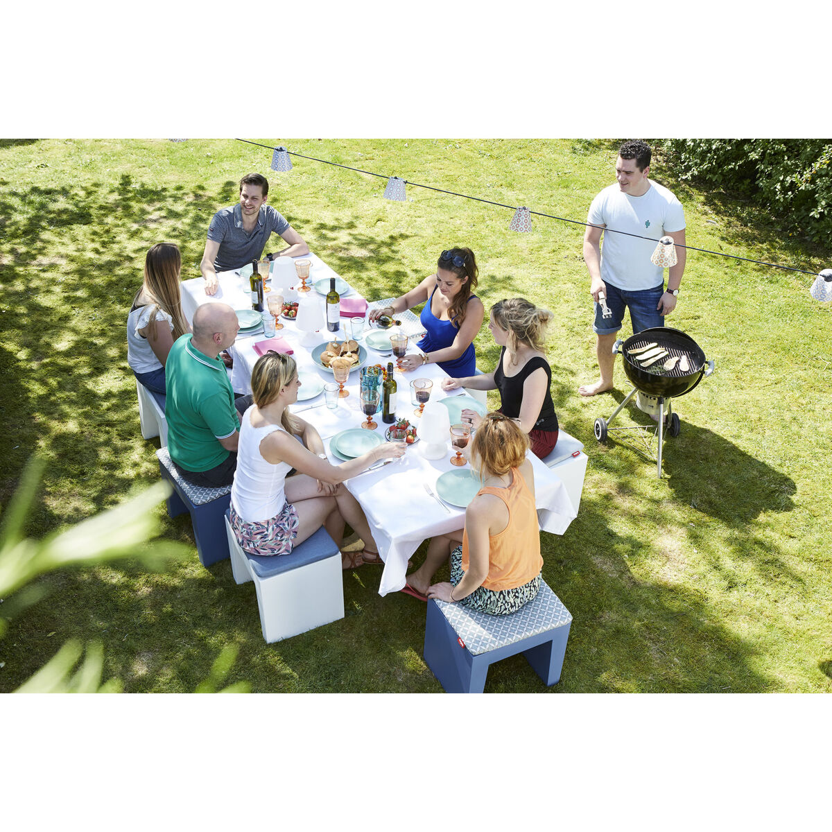 A multifunctional block that has style! Stool, side table or bedside table, Concrete Seat is an eclectic, versatile object. It can be used anywhere: inside or out, around a table, near a sofa, a bed and even in the garden since it has nothing to fear from bad weather. You can decorate your seat with a cushion (sold separately). You can arrange several Concrete Seats together to create a bench or focal point. Made in the Netherlands, Concrete Seat is eco-designed: it’s entirely made from recycled polyethylene (recycled materials from Europe). Lightweight and very durable, it needs to be cleaned. You find it’s too light? Weigh it down by filling it with sand or water using the screw cap under the seat. PLEASE NOTE: Seat cushion not included: sold separately.