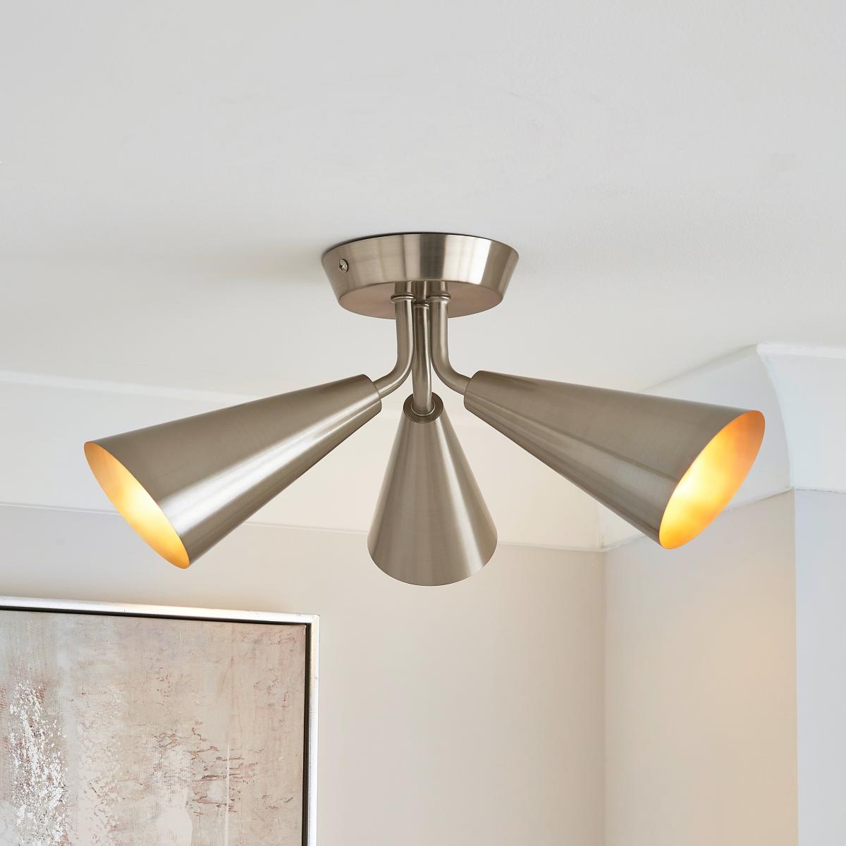 Available in a choice of two stunning colourways, this Cone 3 Light Ceiling Fitting has been designed with three cone shaped shades encased over its bulbs. It's compatible with a dimmer switch, so you can set that perfect, cosy ambience no matter the occasion. Good things come to those who coordinate, so match this fitting with its family items available to purchase separately for a compete finish.