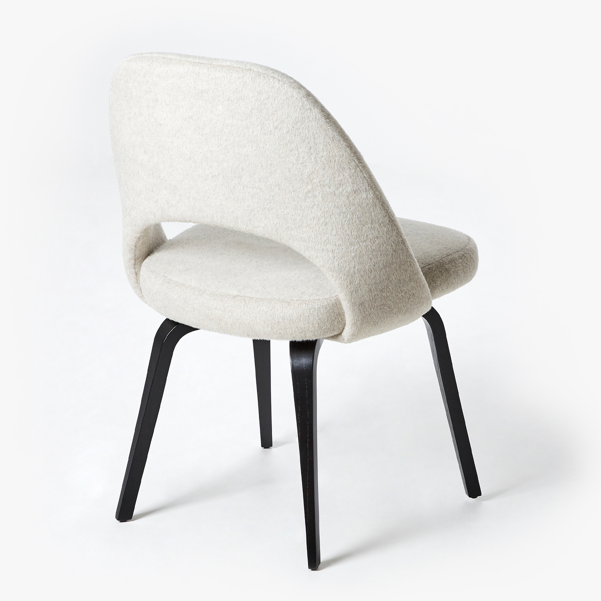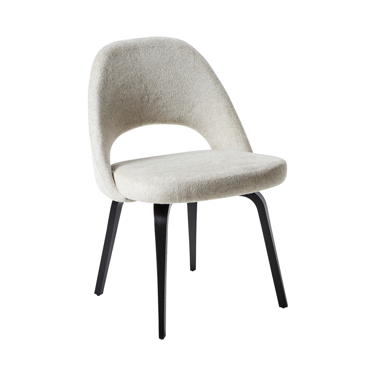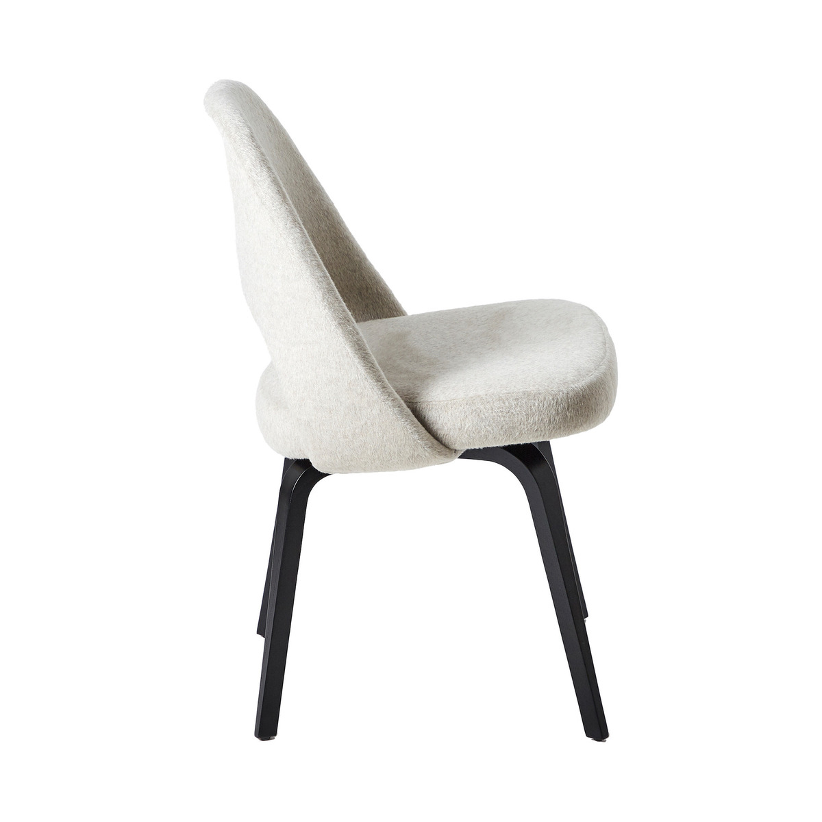 An iconic design by Eero Saarinen, this take on the Conference Chair awards it Knoll's luxe Colorado Sand upholstery and elegant ebonised walnut venner legs. Introduced in the 1950s and revolutionising the notion of what executive seating could be, the chair's simple, semi-circular shaping and a streamlined silhouette provided uncomplicated comfort. Its contemporary style is accented by the tactile Colorado Sand upholstery; a delightful wool-mohair-polyamide blend. Eero Saarinen was born into the design world, with his father Eliel working as the Director of the Cranbrook Academy of Art and his mother Loja a world-famous textile designer, but Eero is best known today for his neo-futuristic style and working closely with Knoll, which still exclusively produces his pieces.