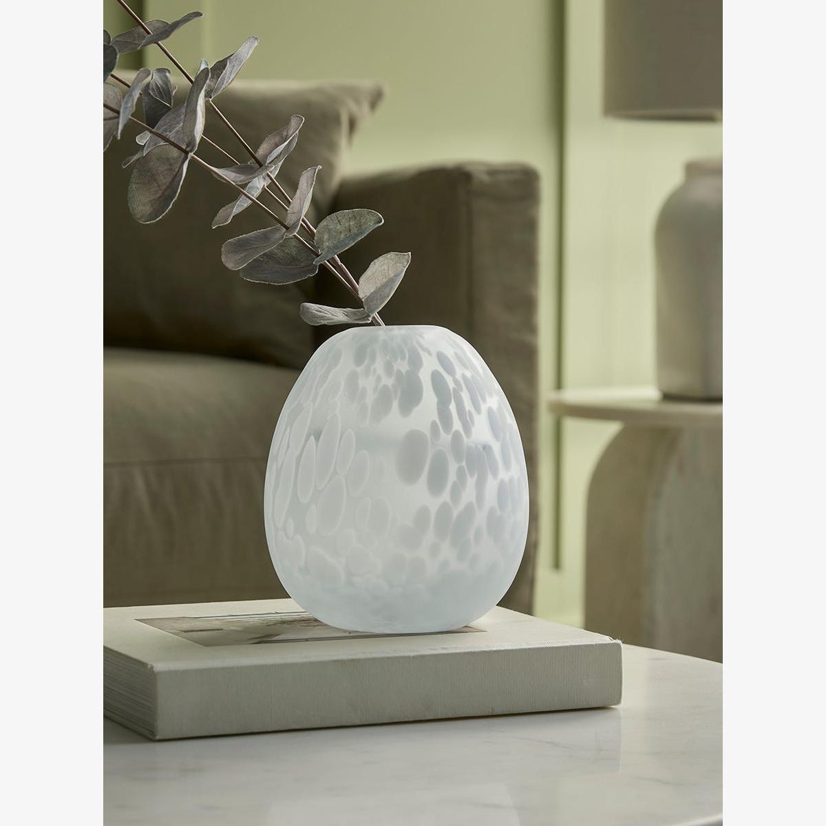 Beautiful as a standalone piece but also to hold a few faux stems, this glass vase has a frosted effect with gentle confetti detailing. As part of our Scandi collection, this vase works in a variety of homes.