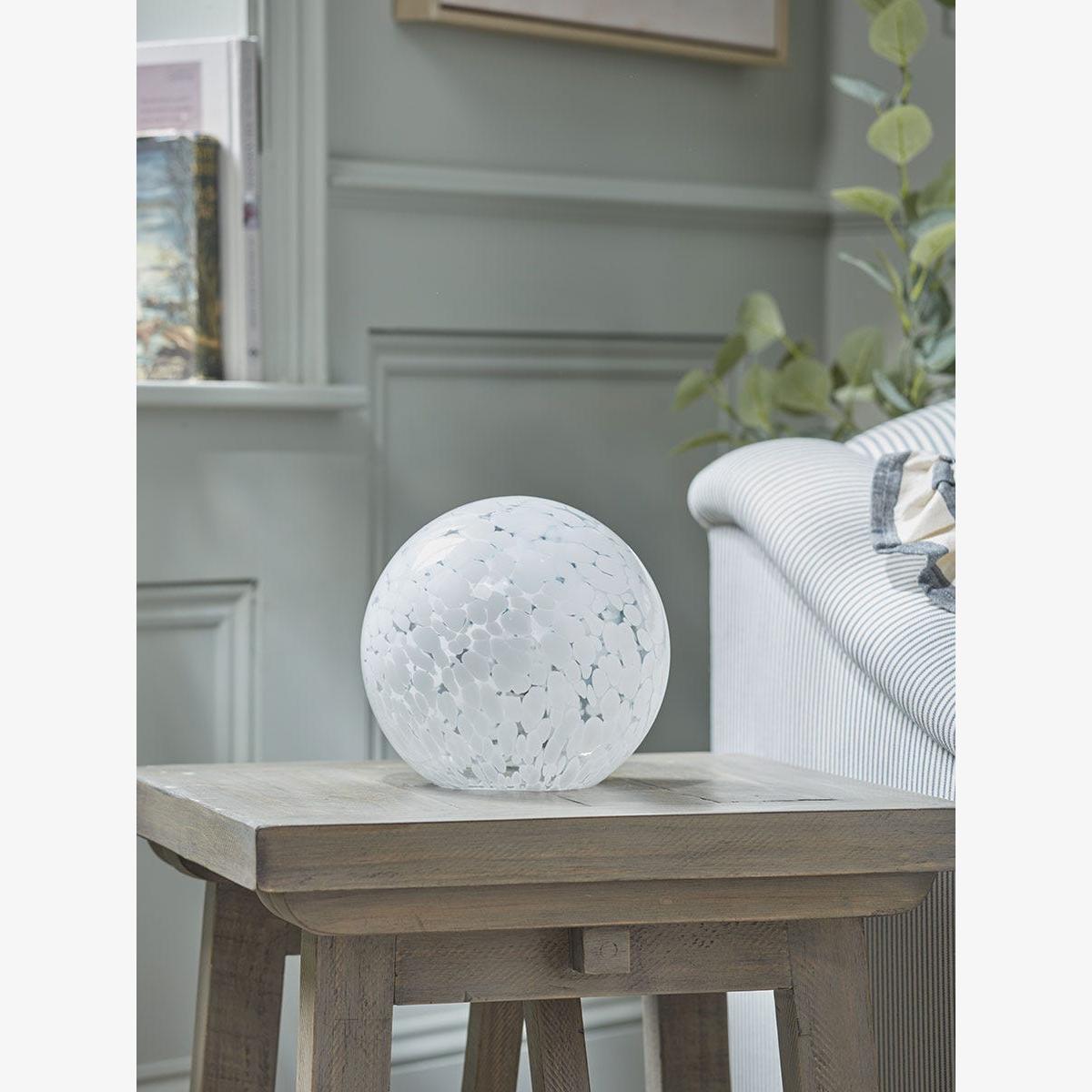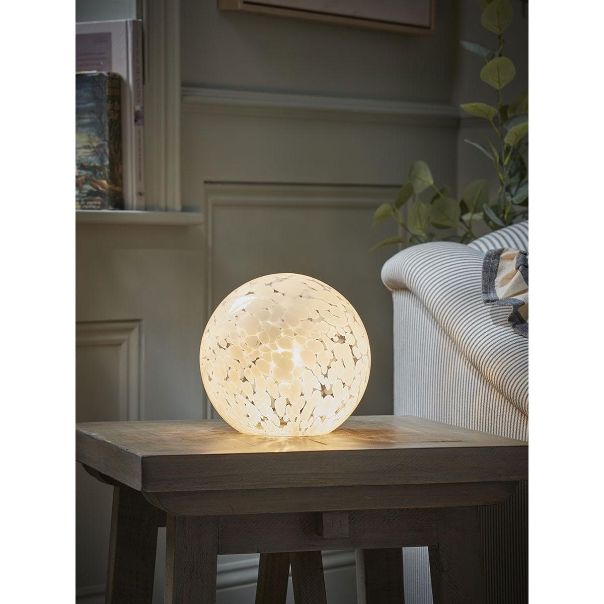 A unique way to light your home, this table lamp casts a wonderful speckled light around your home. The white confetti paint-like strokes that surround the clear glass to create an elegant feature that works well as part of our French Blue trend.