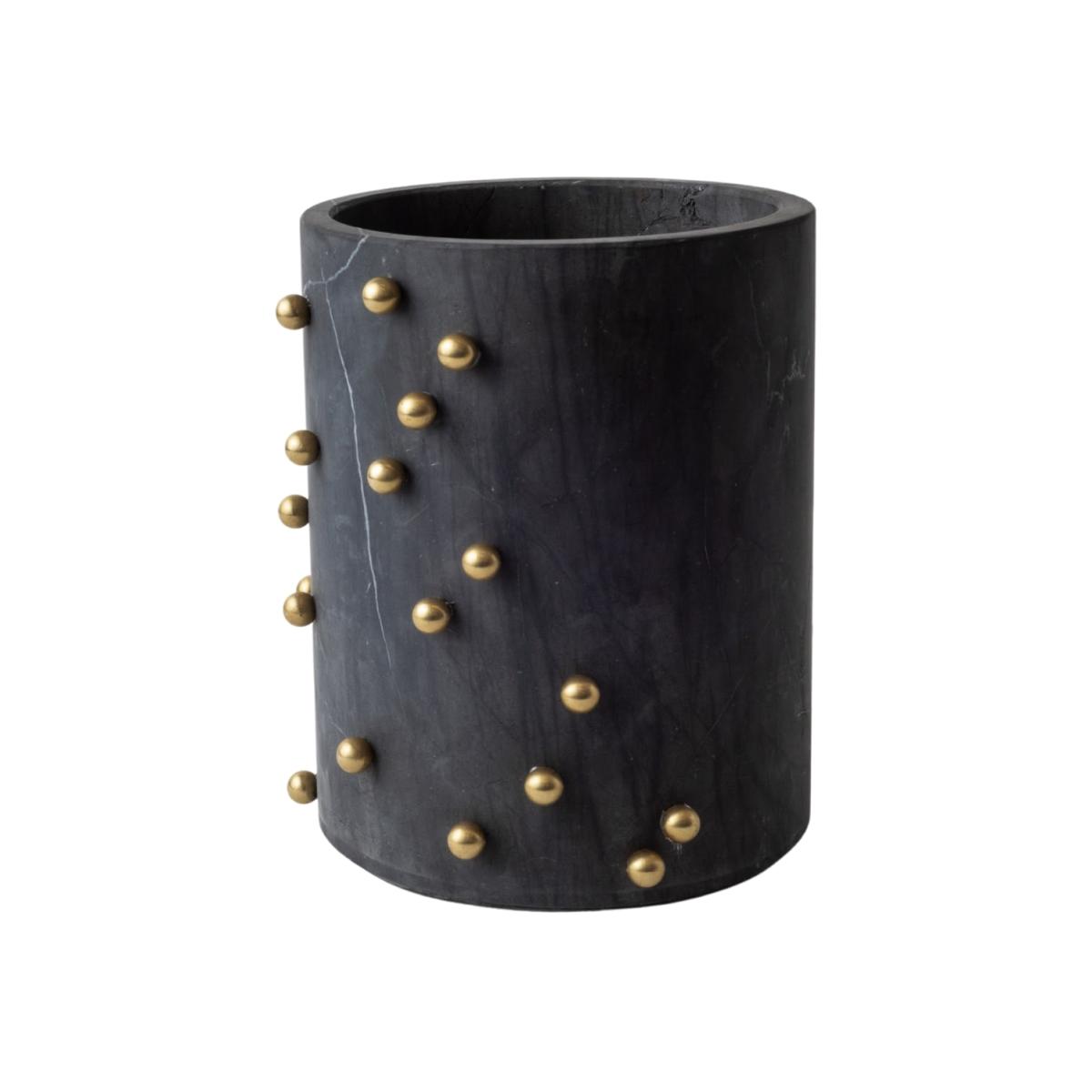 Introducing the stunning Confetti Wide Vase from bruci, a remarkable celebration of exquisite materials. Meticulously crafted from the finest quality marble, this luxurious cylindrical vase features an array of gleaming brass sprinkles delicately positioned on its surface, creating a unique and visually arresting effect. The Confetti Tall Vase is a perfect balance of elegance and daring, making it a stunning addition to any sophisticated decor. This versatile vase is perfect for displaying fresh flowers, but is equally striking as a stand-alone statement piece. The Confetti Wide Vase is available in white, black, and travertine marble, and is part of a magnificent three-piece series, including the Confetti Tall and Confetti Bowl. BRASS: To keep your bruci brass pieces shiny, clean them with a dry cotton cloth periodically. One thing to remember about brass is that it is normal for the material to get stained from the environment that surrounds the piece. Whenever a piece gets stained, clean it with a cotton cloth and metal polish. Avoid contact with water and extreme humidity. MARBLE:Marble is a natural product and may contain fissures, cracks, holes, pits and natural yellowing or browning can be present. No two pieces are alike but they are all relics of the earth that capture a moment in time. Marble is a fragile material so treat your pieces with care. After use, pat down the material with a neutral cleaner and war water and pat dry immediately. Marble is a porous stone so be careful not to leave water or liquid for long periods of time on the Marble as it will soak in and possibly leave a mark. The same applies to acidic products such as lemons and vinegar, strong pigments like cumin or turmeric, and oily products.