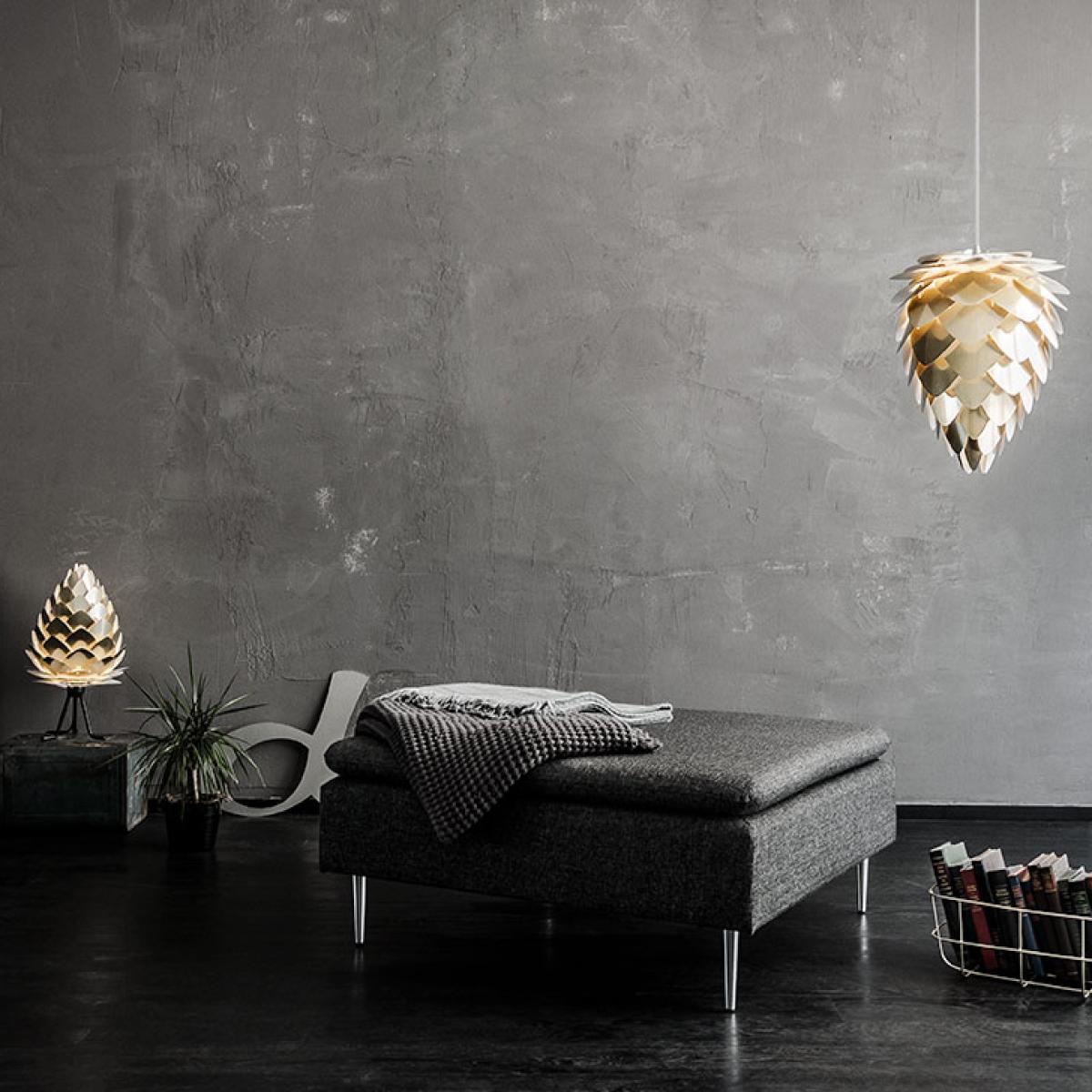 Incorporate the metallic trend into your home with the Conia lamp in brushed brass by Vita. The Cornia shade was designed by Søren Ravn Christensen and is delivered un-mounted in a flat box with simple instructions. The lamp shade can be used either as a pendant, floor lamp or table lamp, depending on the suspension or stand it is paired with. Available in different sizes.