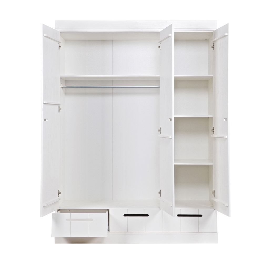 Versatile and elegant these wardrobes go with anything and offer a wide range of storage options. Build your own storage wall with this contemporary. Kids bedroom. Wardrobe. A great way to create storage. This stylish freestanding cabinet has doors made from Scandinavian solid pine with a white painted finish and white melamine carcass and interior shelving. Alternatively, customise these lockers with a coat of paint in a colour of your choosing to fit any bedroom theme. A 3 door wardrobe that looks stylish freestanding or against another. Connect.